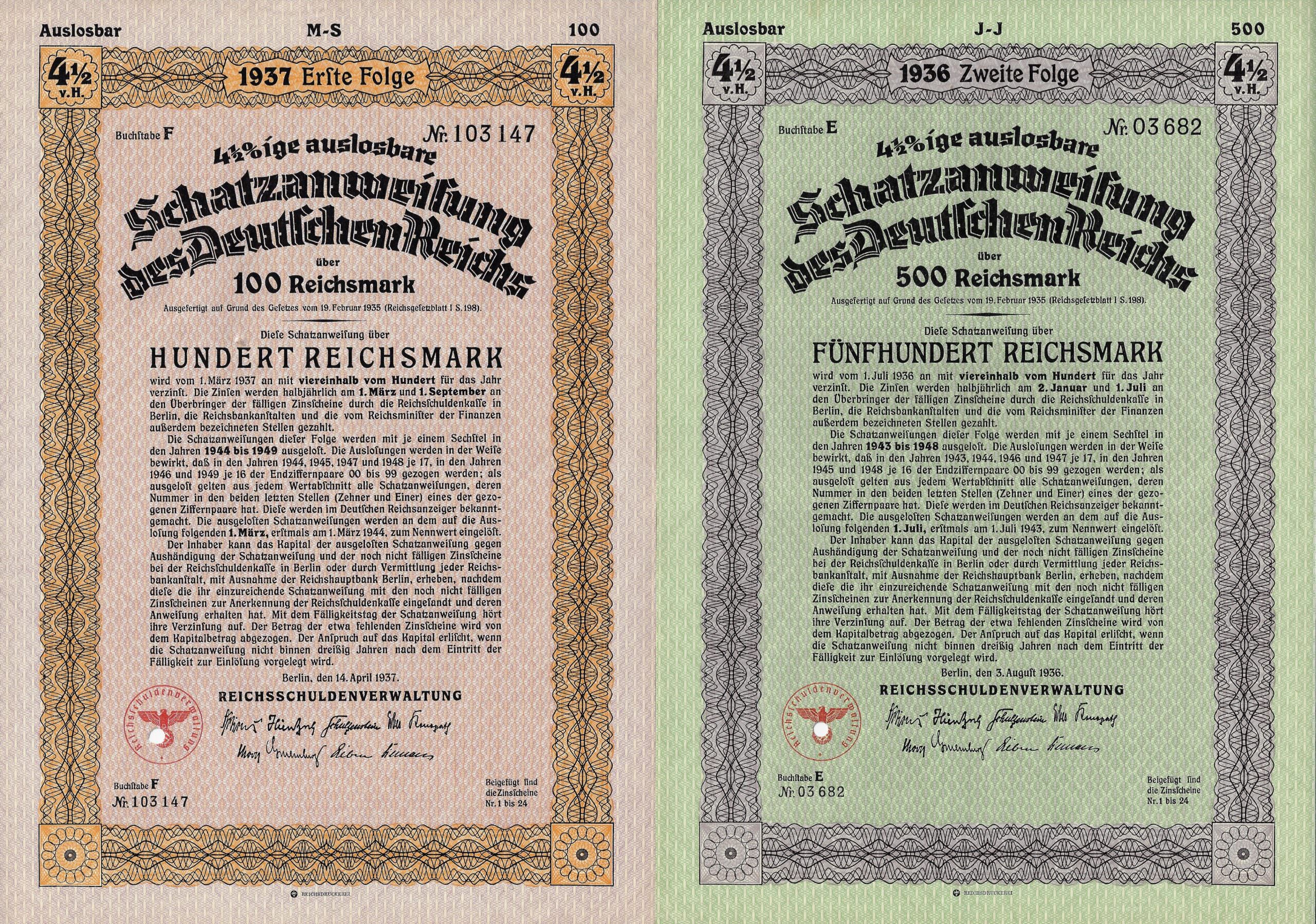 Ab dem Jahr 1935 hat das Deutsche Reich Schuldverschreibungen und sog. auslosbare Schatzanweisungen begeben.