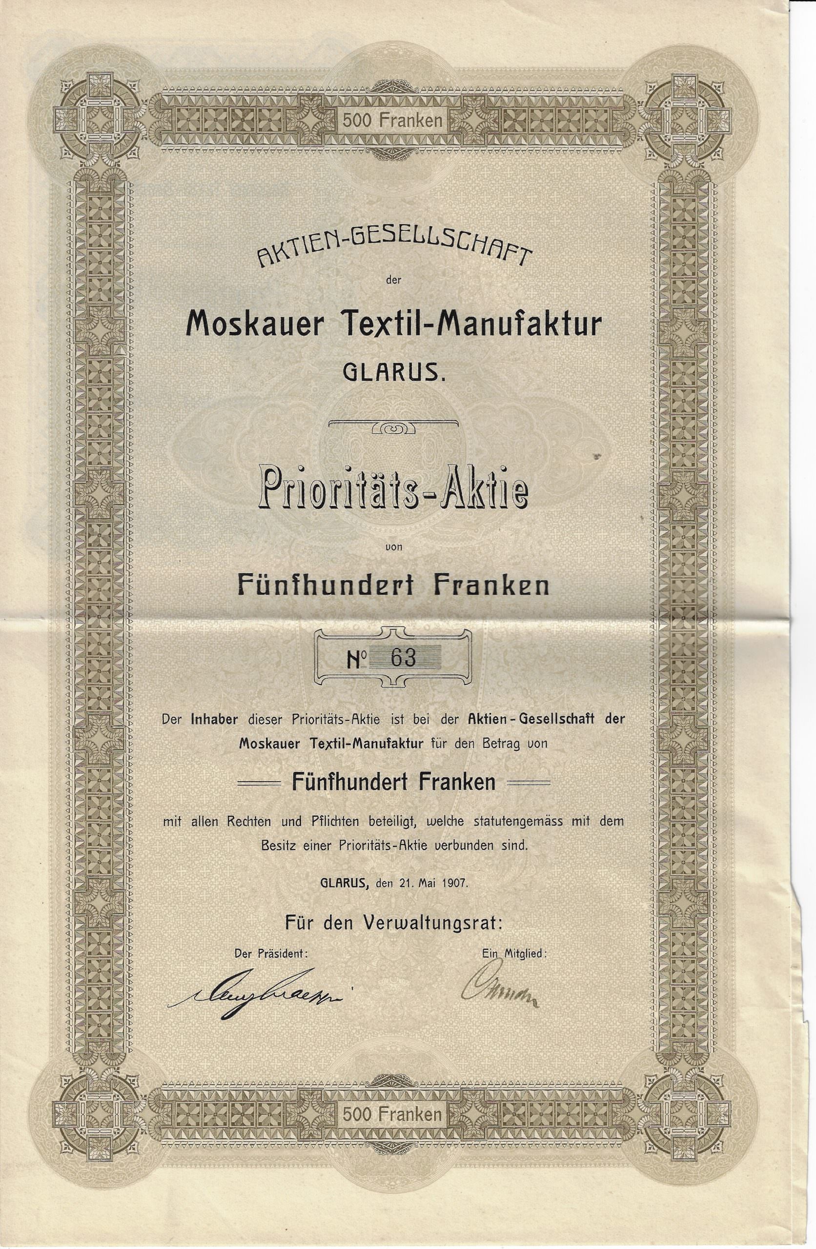 Die große, in Russland ansässige Baumwollspinnerei und -weberei wurde mit Schweizer Kapital finanziert.