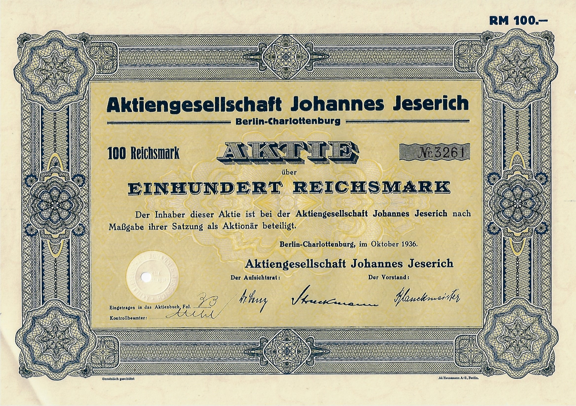1888 bis 1913: AG für Asphaltierung und Dachbedeckung vorm. Johannes Jeserich, danach: AG Johannes Jeserich.
