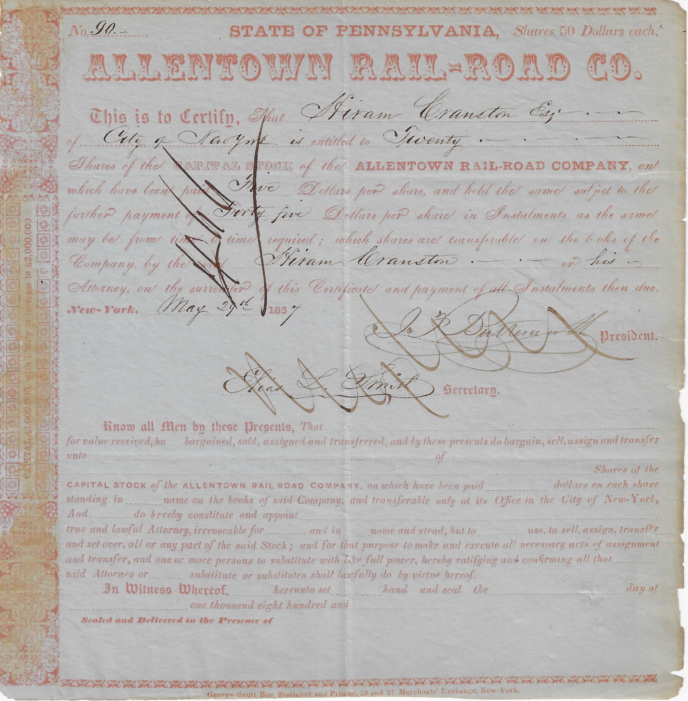 Die Allentown Railroad war eine Eisenbahngesellschaft in den Vereinigten Staaten und wurde 1853 mit der ursprünglichen Absicht gegründet, die Central Railroad of New Jersey in Allentown mit der Hauptstrecke der Pennsylvania Railroad über die Allegheny Mountains zu verbinden .