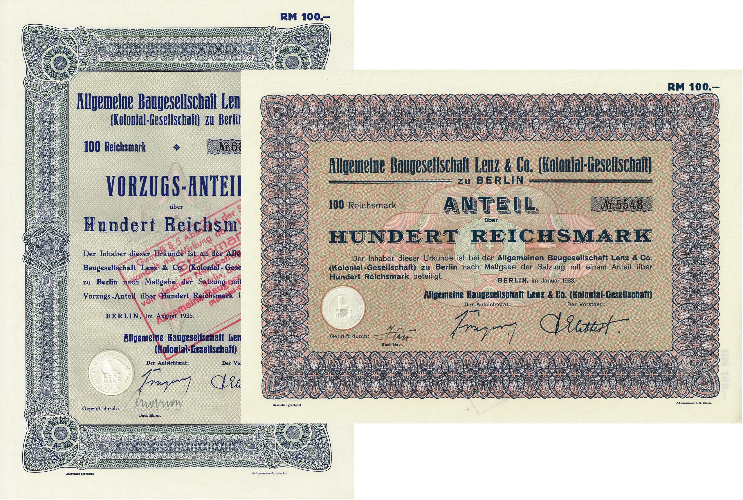 Seit 28.03.1927 lautete die Firma Allgemeine Baugesellschaft Lenz & Co. (Kolonial-Gesellschaft).