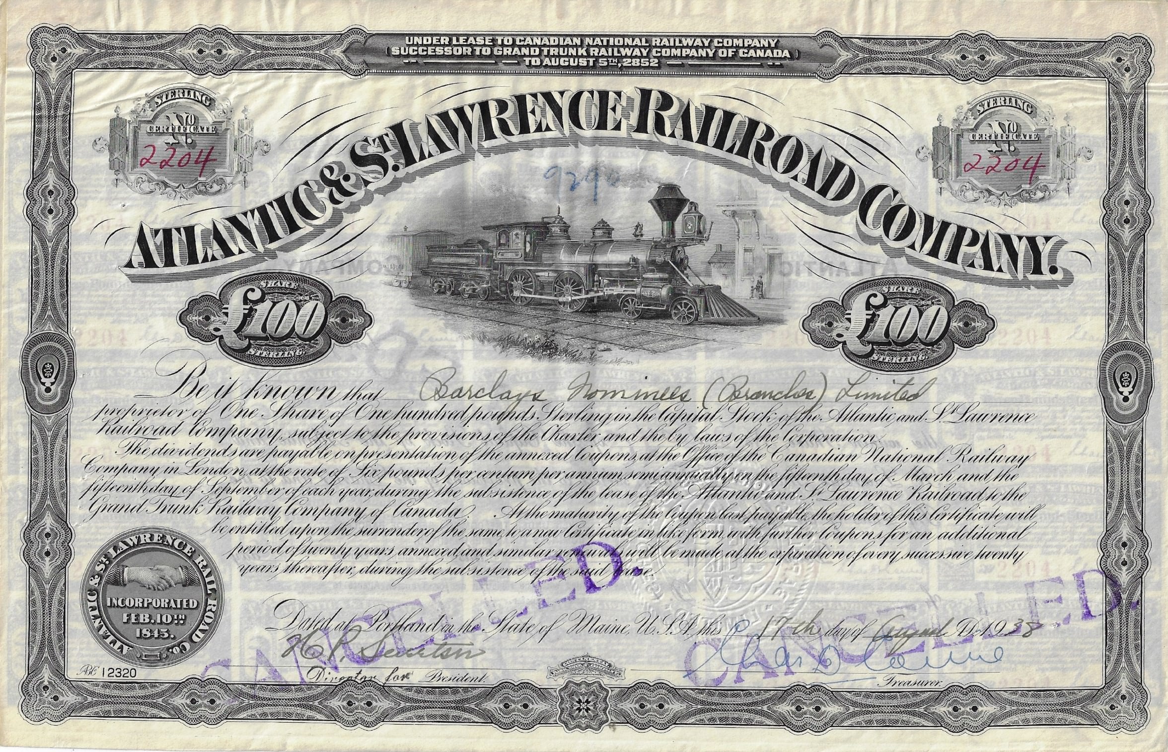 Mit Wirkung vom 1. Juli 1853 leaste die Grand Trunk Railway (GTR) die Atlantic&St. Lawrence für 999 Jahre. 1874 spurte die GTR die Strecke auf Normalspur um.