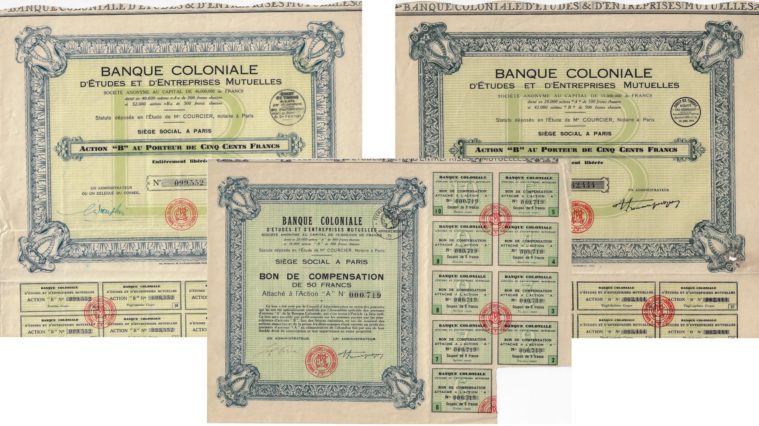 Französische Kolonialbank mit dem Geschäftszweck der Finanzierung geschäftlicher Aktivitäten in den französischen Kolonialgebieten