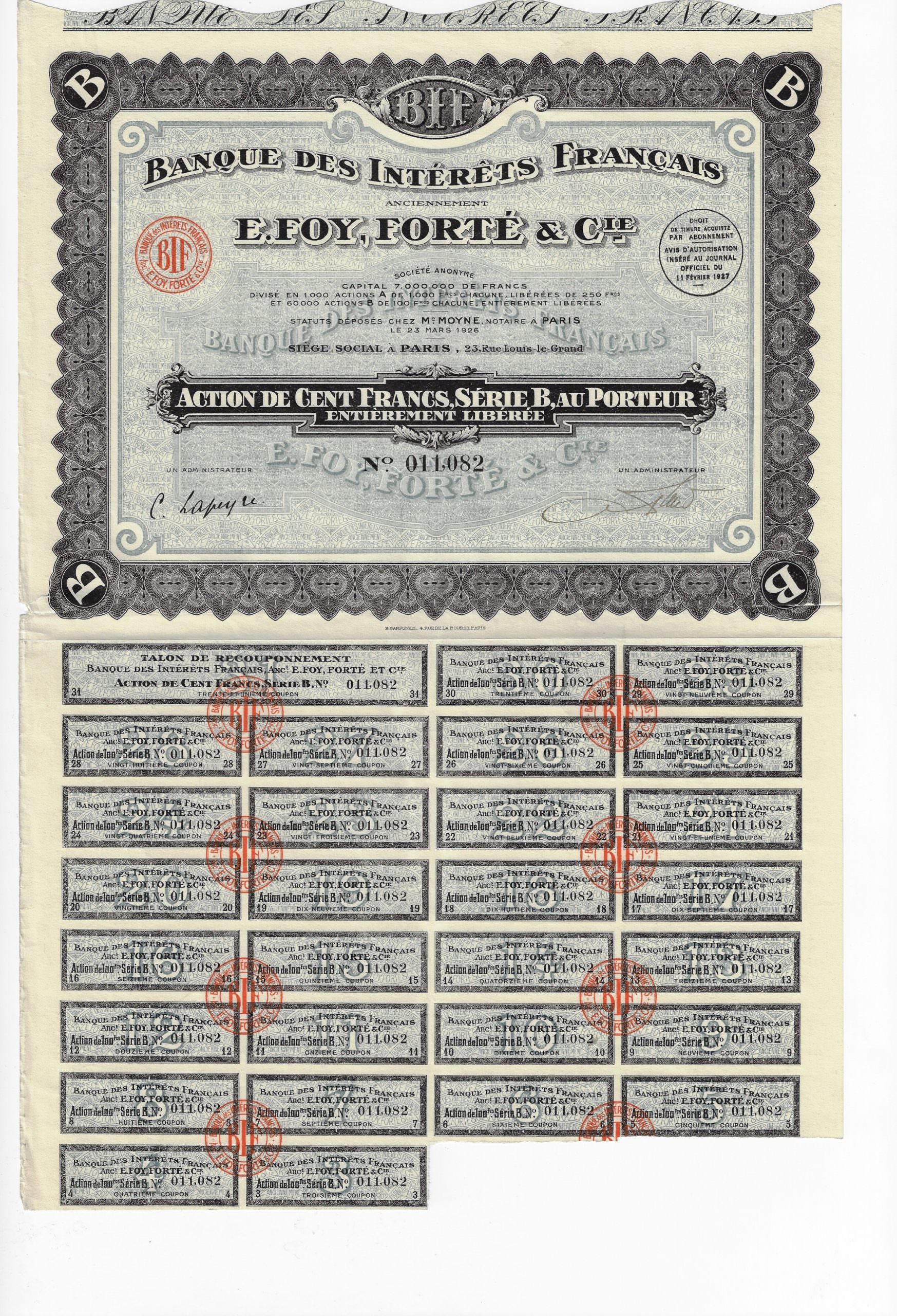 Die 1926 in Paris gegründete Aktiengesellschaft, vormals E. Foy, Forté et Compagnie, hatte sich auf die Vermittlung ausländischer Wertpapiere spezialisiert.