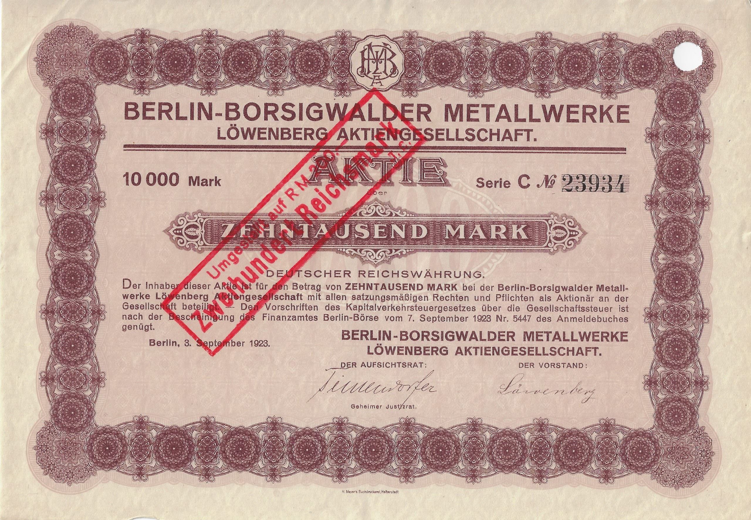 Gründung 1916 zur Übernahme und Weiterführung der Fabrik für Kupfer- und Messingfabrikate (Rohre, Drähte und Profile v.a. für Schiff- und Lokomotivbau) des Theodor Löwenberg, der auch alleiniger Aktionär und Vorstand blieb.