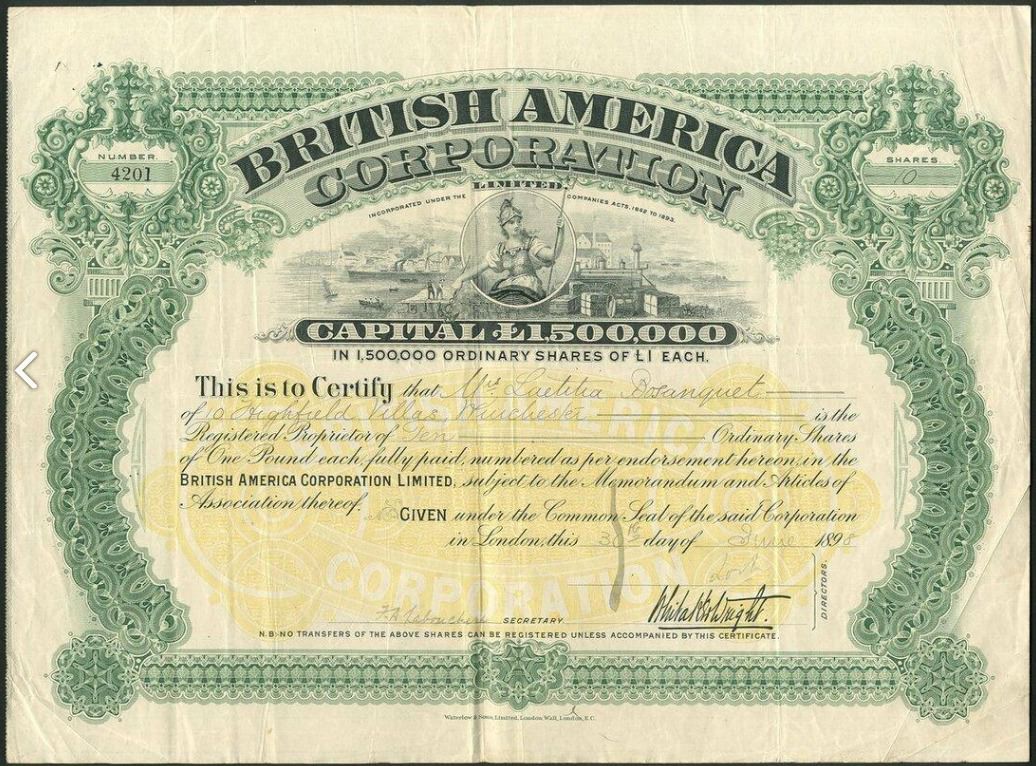 British America Corporation, £1-Aktien, 1898,