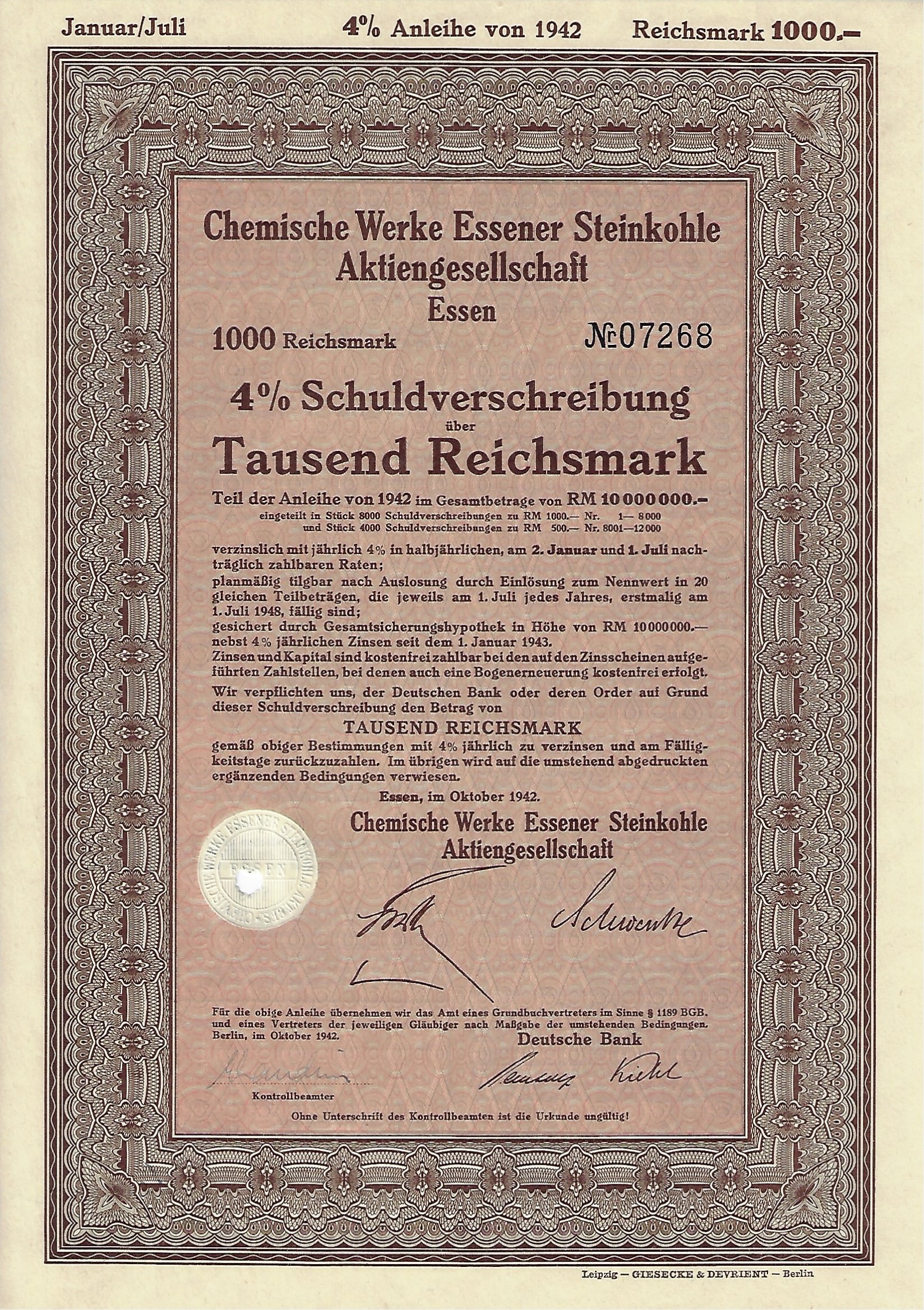 Unternehmenszweck: Errichtung, Erwerb und Betrieb von Anlagen zur Herstellung von Benzin aus Steinkohle.