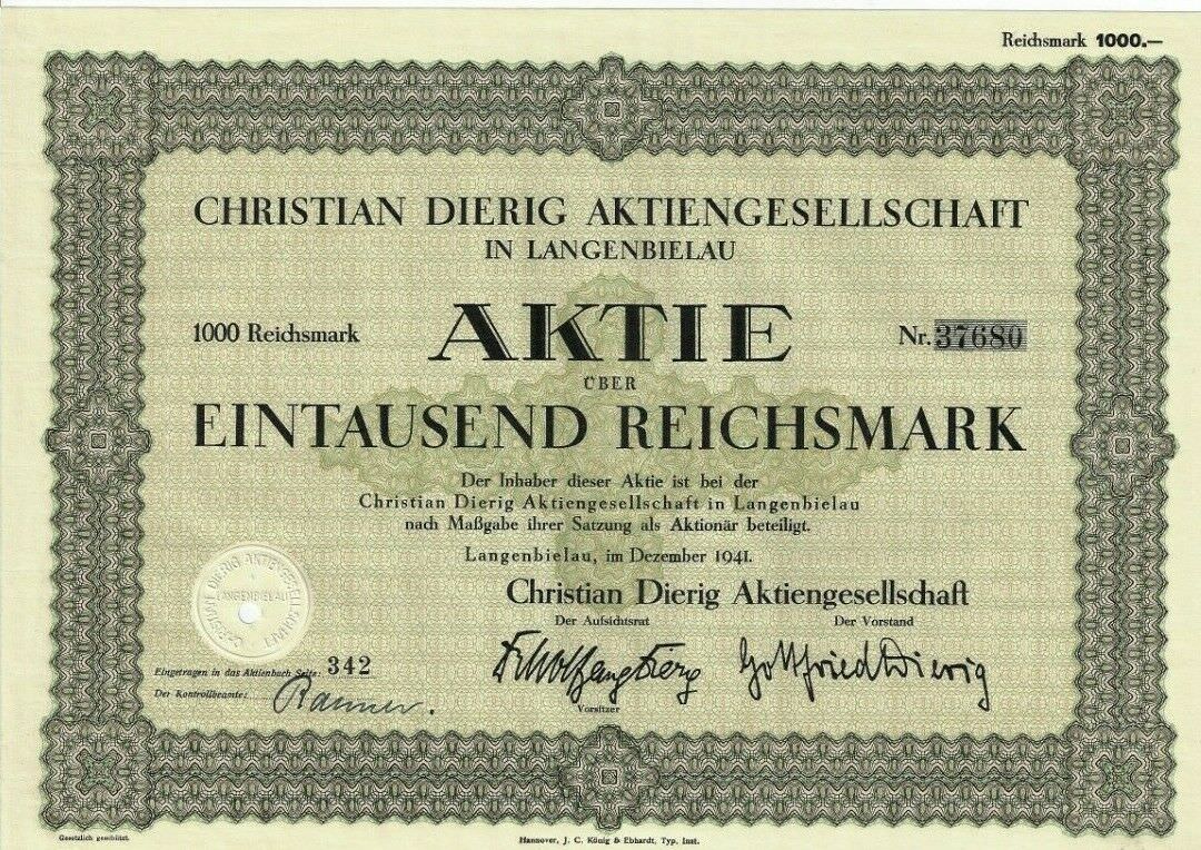 Gegründet 1805 durch Christian Dierig als ein textiles Verlagsgeschäft in Langenbielau in Schlesien (heute Polen).