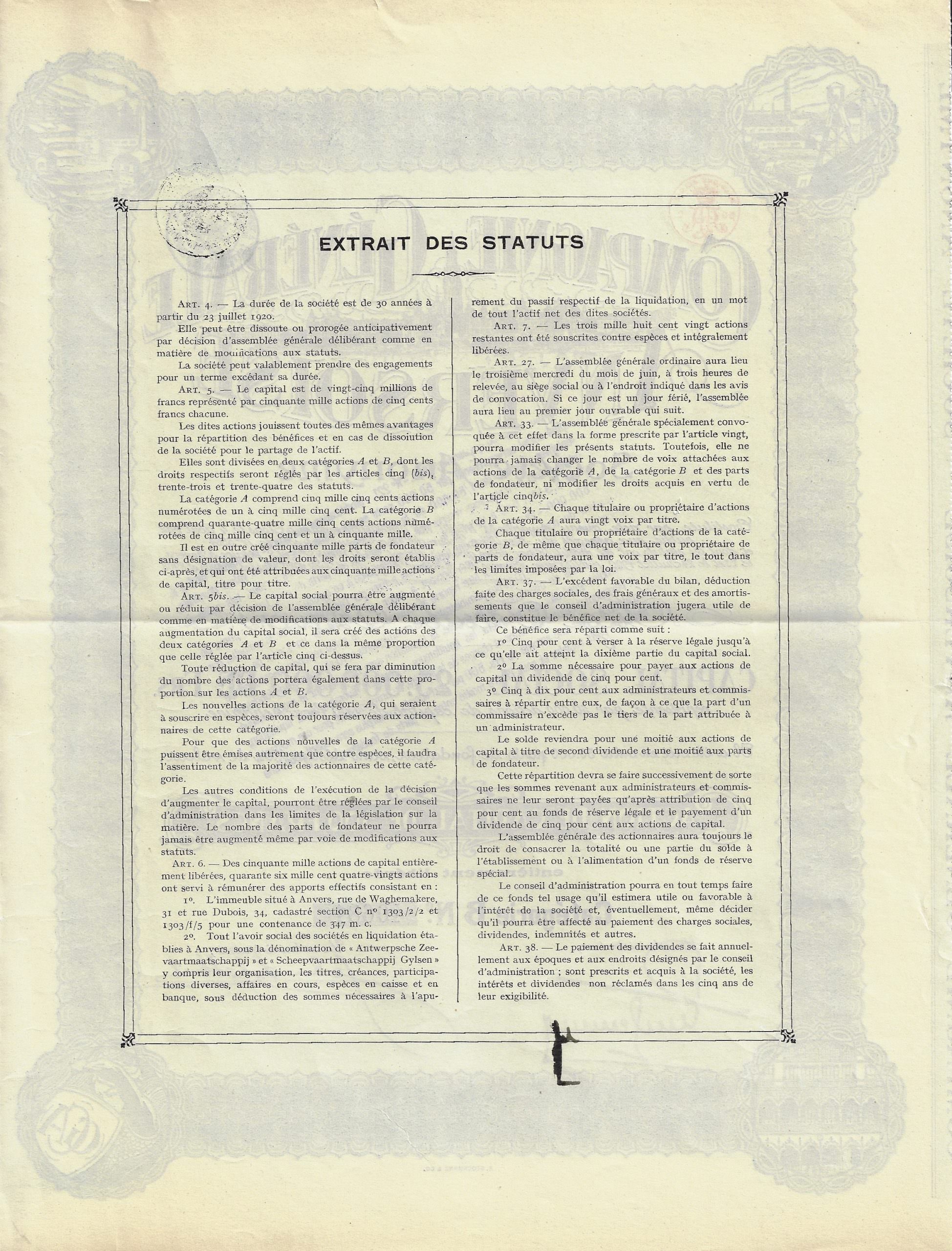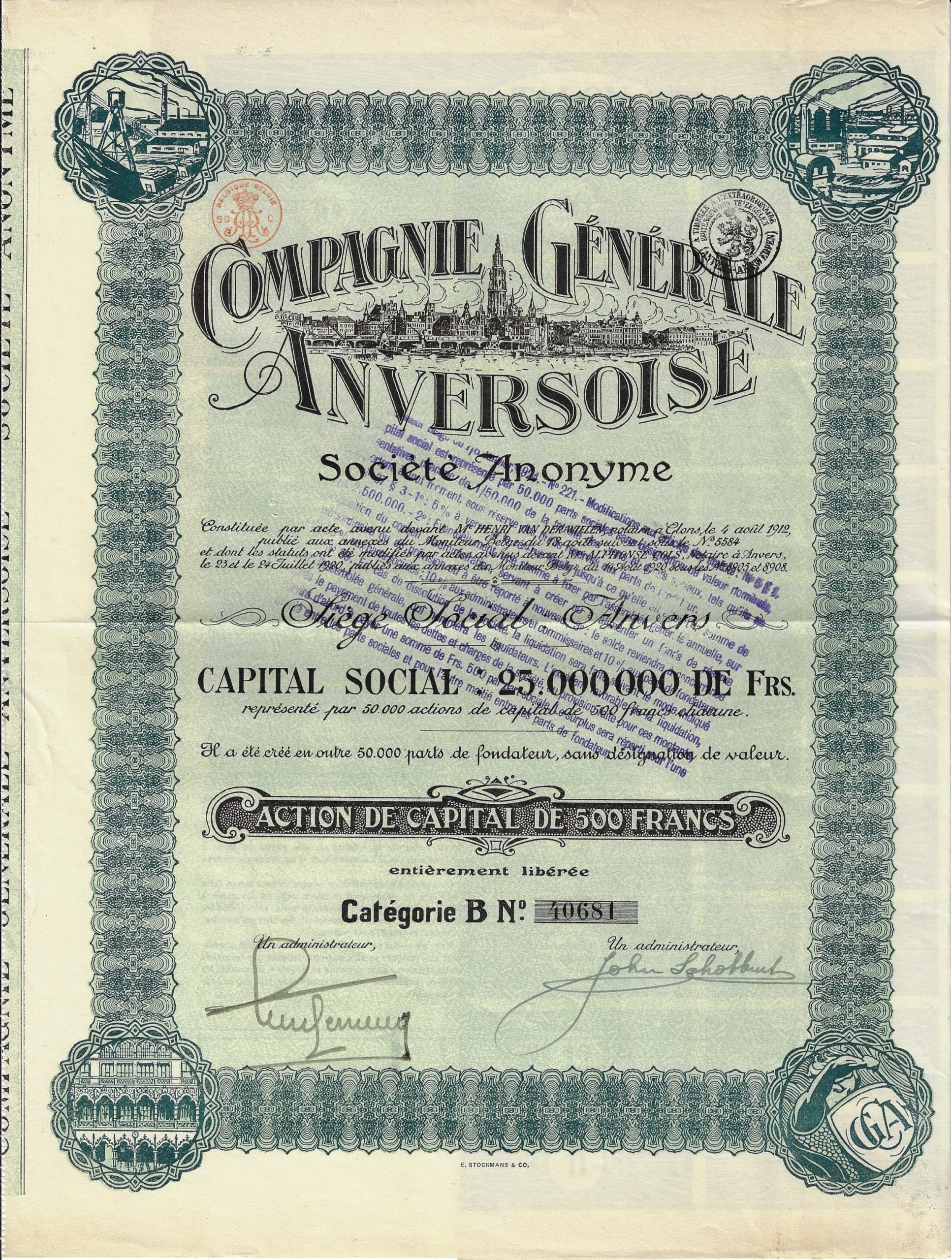 Die Gesellschaft hat die “Antwerpsche Zeevaartmaatschappij” und die “Scheepvaartmaatschappij Gylsen” mit allen Besitztümern übernommen.