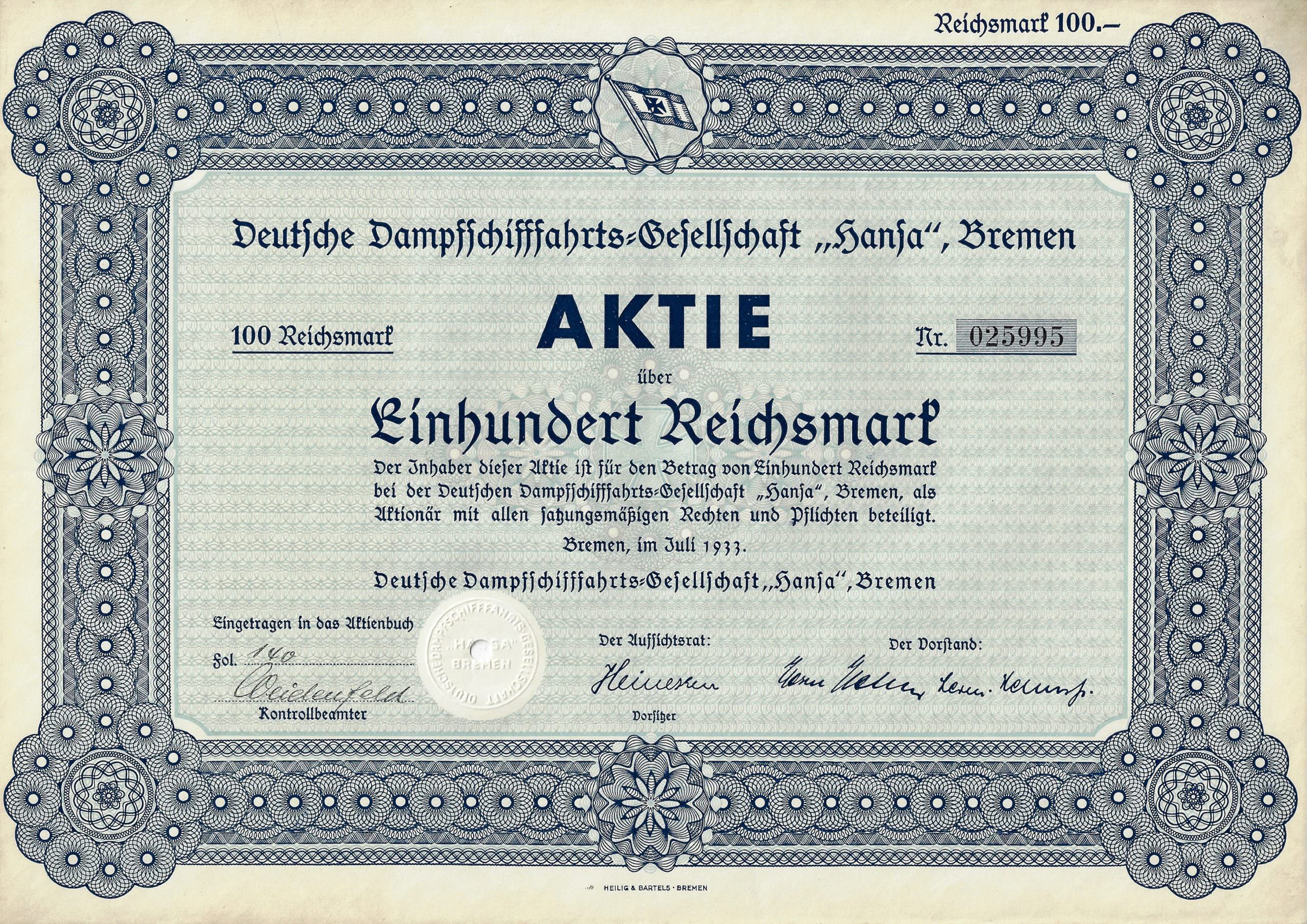 Deutsche Dampfschifffahrts-Gesellschaft „Hansa“, Bremen, 1933