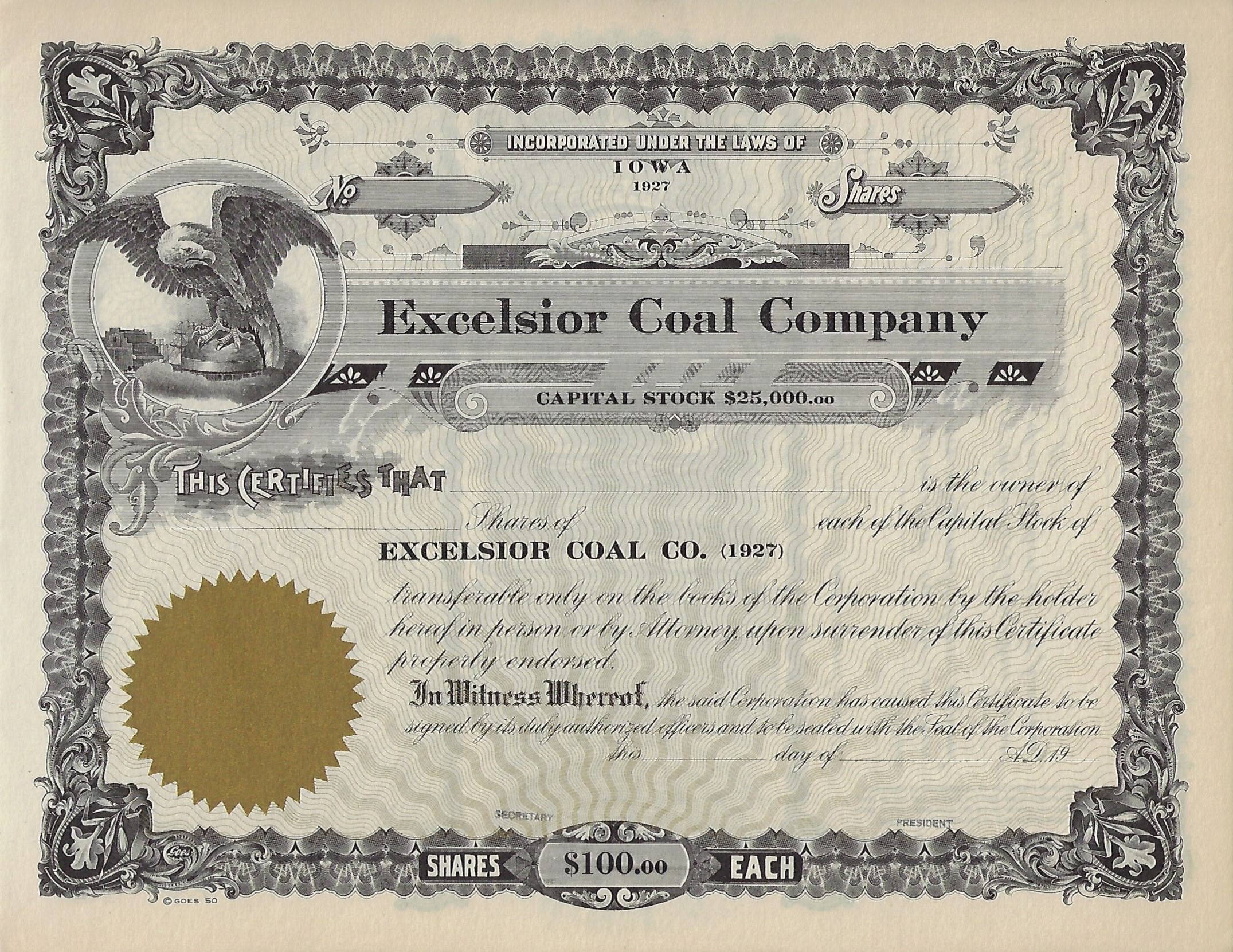 Die Excelsior Coal Company wurde in Iowa gegründet und hatte Büros in Oskaloosa.