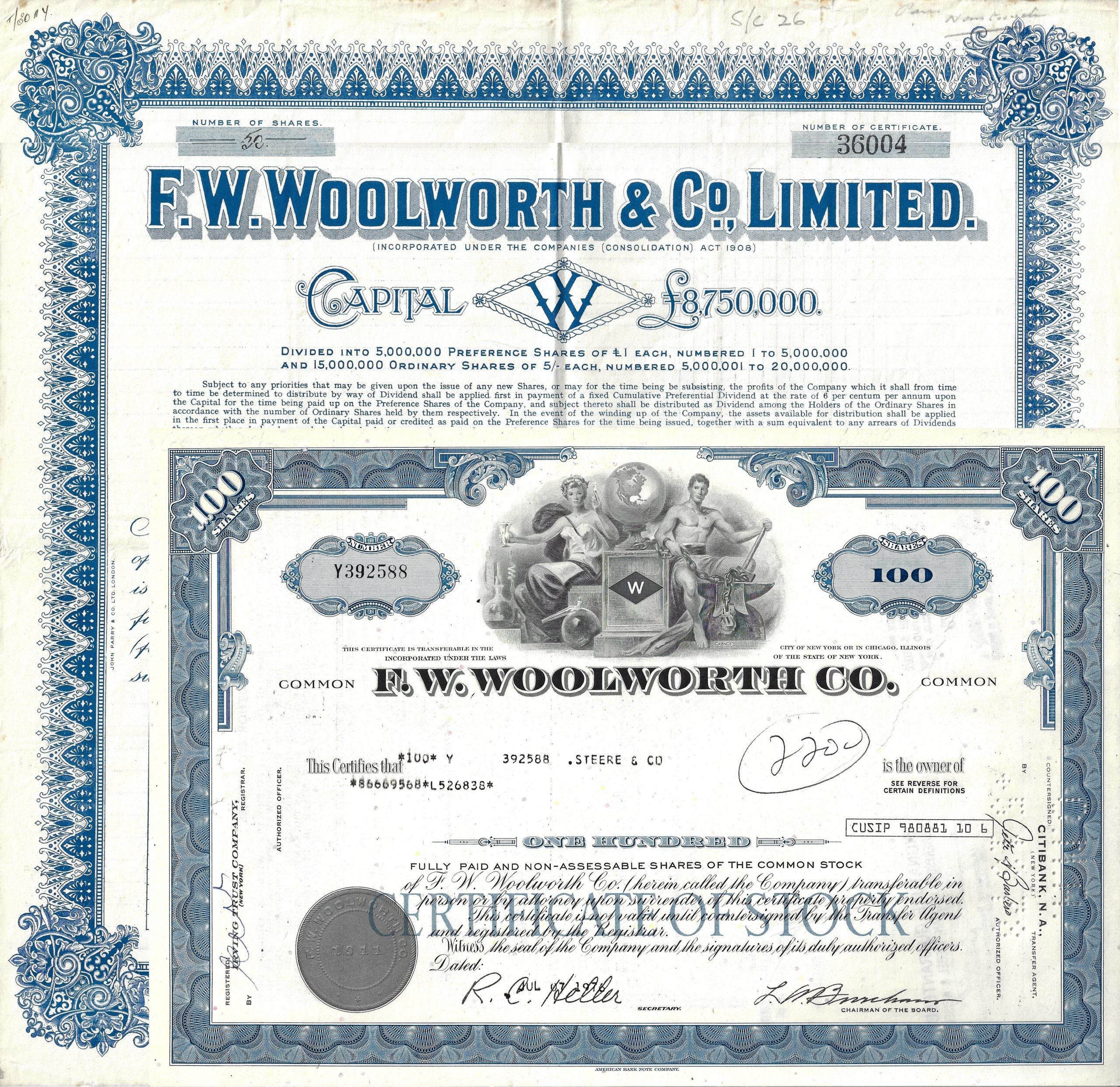 1909 wurde die F.W. Woolworth Co. Ltd. mit mehreren Partnern gegründet. Bis 1911 wurden weitere Partner eingebunden, und man hatte nun insgesamt 596 Läden in Betrieb.