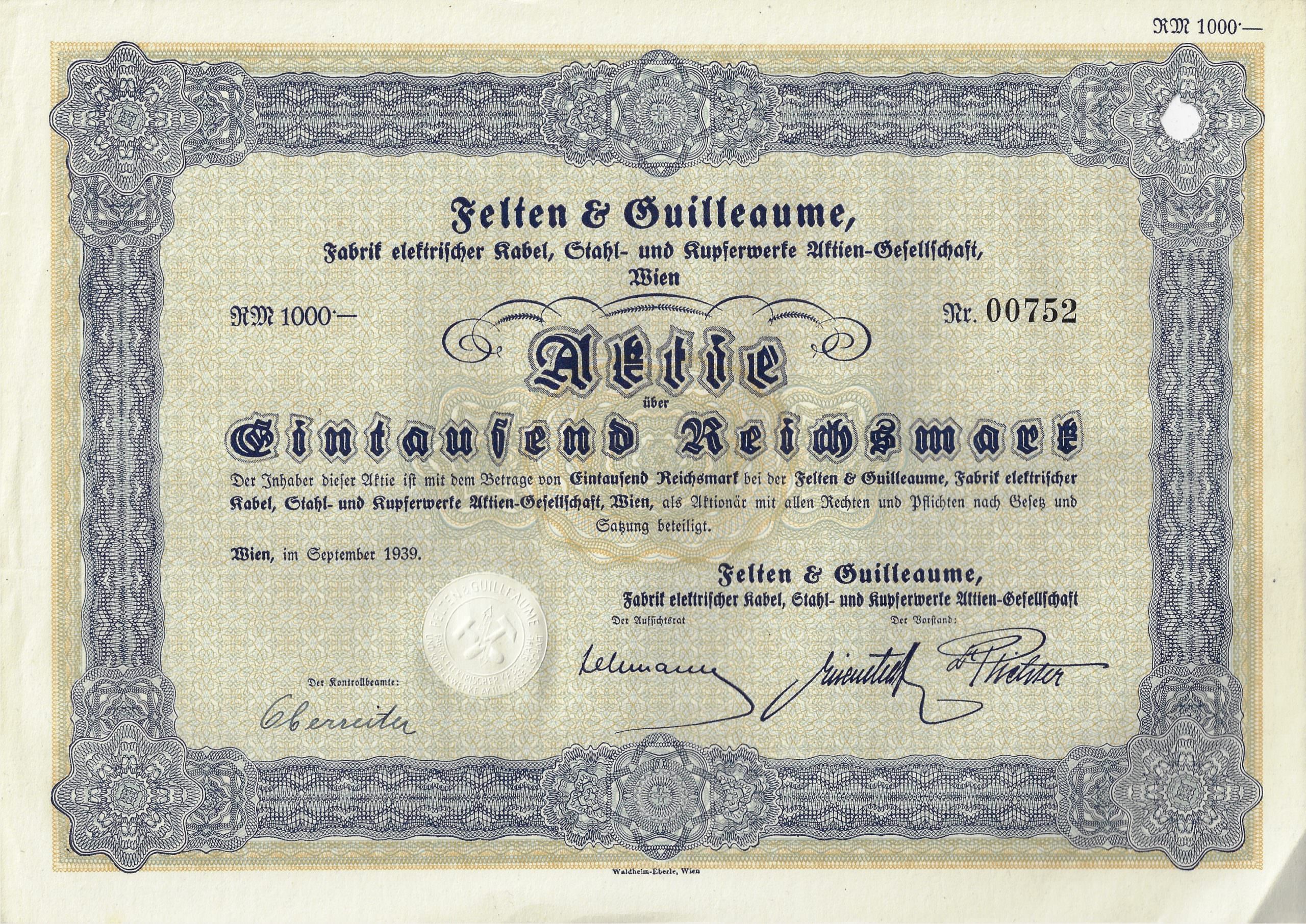 Felten & Guilleaume, Fabrik elektrischer Kabel, Stahl- und Kupferwerke Aktien-Gesellschaft, Wien (1939)