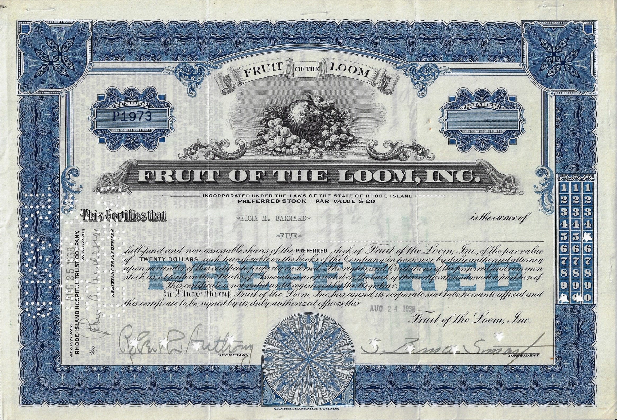 Das Logo ist weltbekannt und wurde inspiriert von der Tochter des Einzelhändlers Rufus Skeel Als diese begann, an den Fruit of the Loom-Produkten von ihr gemalte rote Äpfel anzubringen, erhöhten sich die Verkäufe. Als die Brüder Knight davon hörten, verwendeten sie den roten Apfel fortan als Logo. Mit der Weltausstellung 1893 wurde das aus einem Stillleben von Früchten bestehende Logo eingeführt, welches in dieser Form noch heute verwendet wird. Fruit of the Loom ist Hersteller von Oberbekleidung, sowie Unterwäsche für Herren.