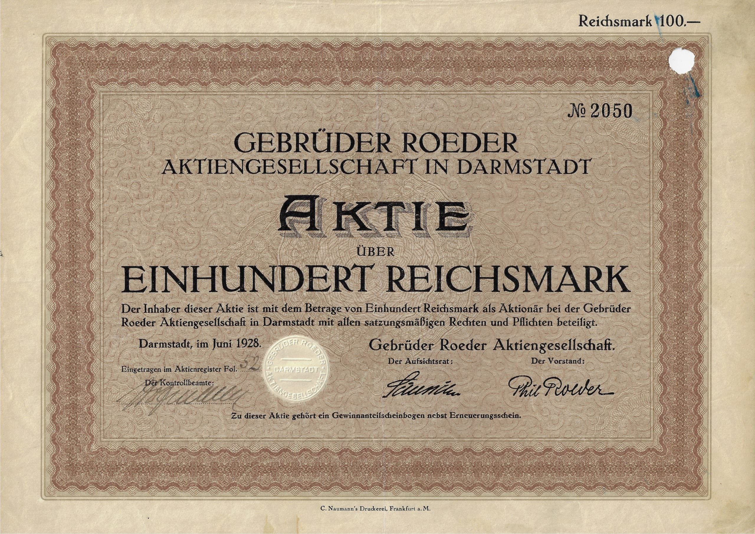 Das Unternehmen wurde 1866 als Erste Darmstädter Herdfabrik und Eisengießerei Gebr. Roeder gegründet und 1919 in eine AG umgewandelt, der Namen wurde am 22. März 1923 auf Gebrüder Roeder AG verkürzt.