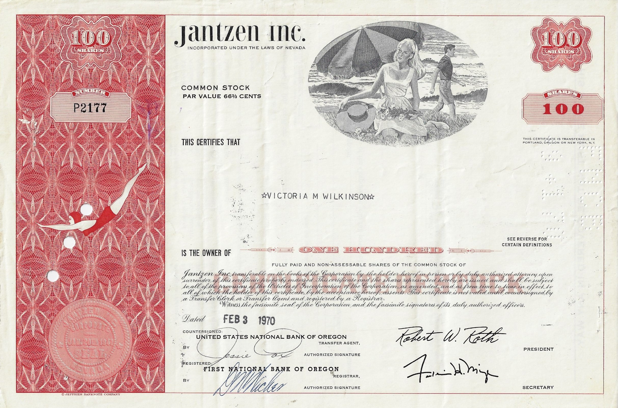 Gegründet: in Portland, Oregon, als Portland Knitting Company von John A. Zentbauer, C. Ray Zentbauer und Carl C. Jantzen, 1910