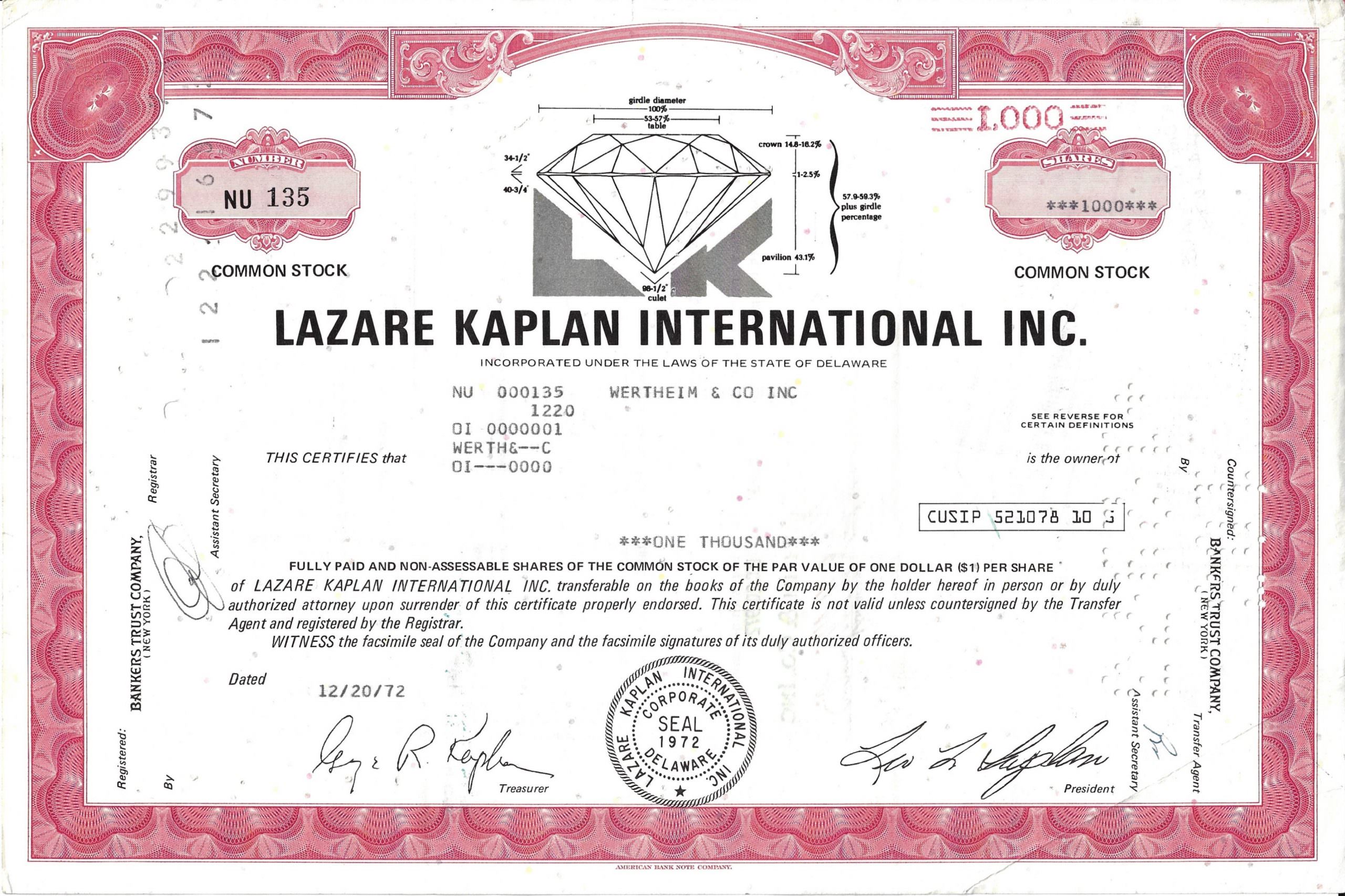 Lazare Kaplan International Inc. (LKI) ist ein Diamantenherstellungs- und -vertriebsunternehmen mit Sitz in New York City .