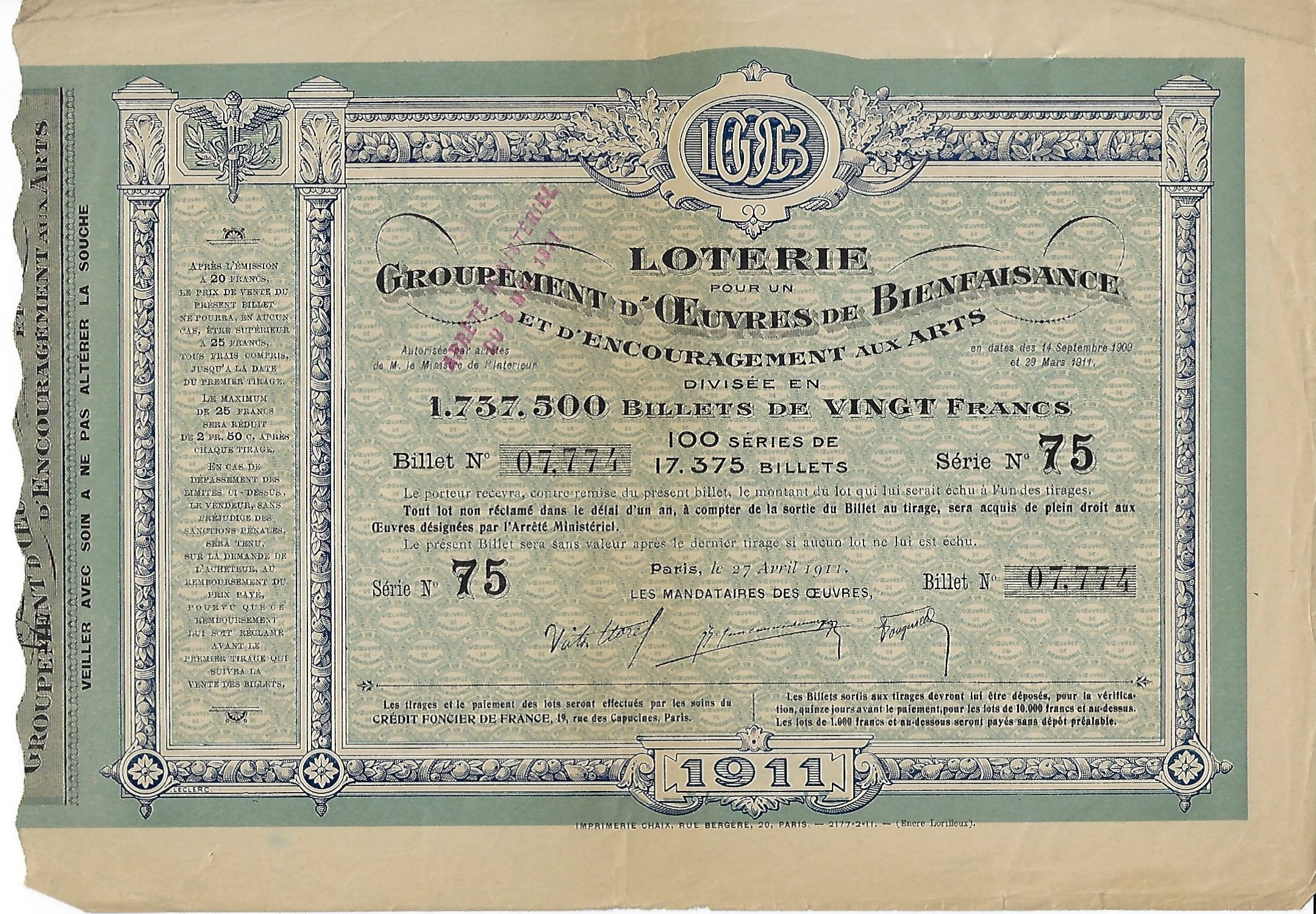 Lotterie für eine Gruppe gemeinnütziger Werke und zur Förderung der Künste.