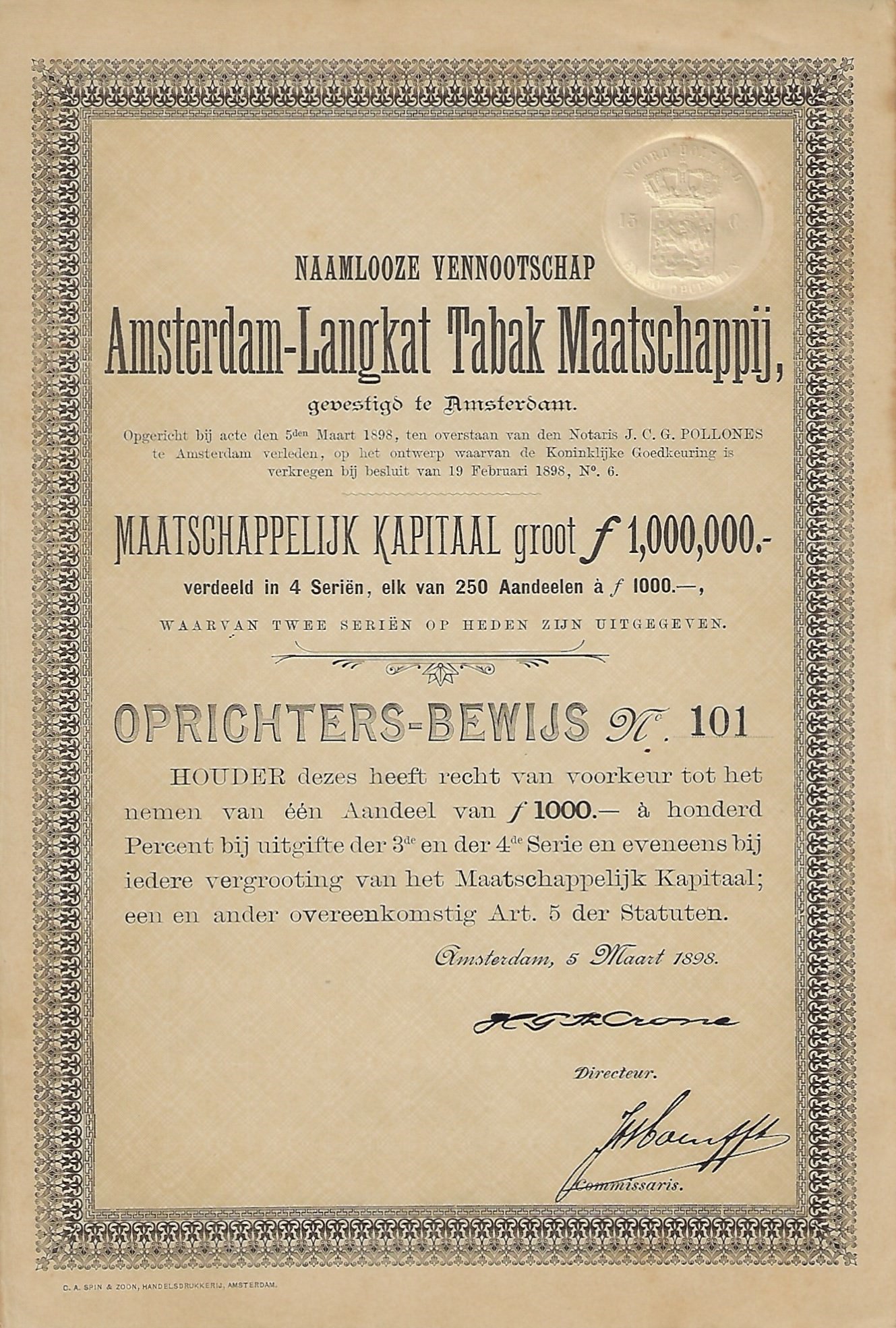 Niederländischer Anteilsschein aus der Kolonialzeit