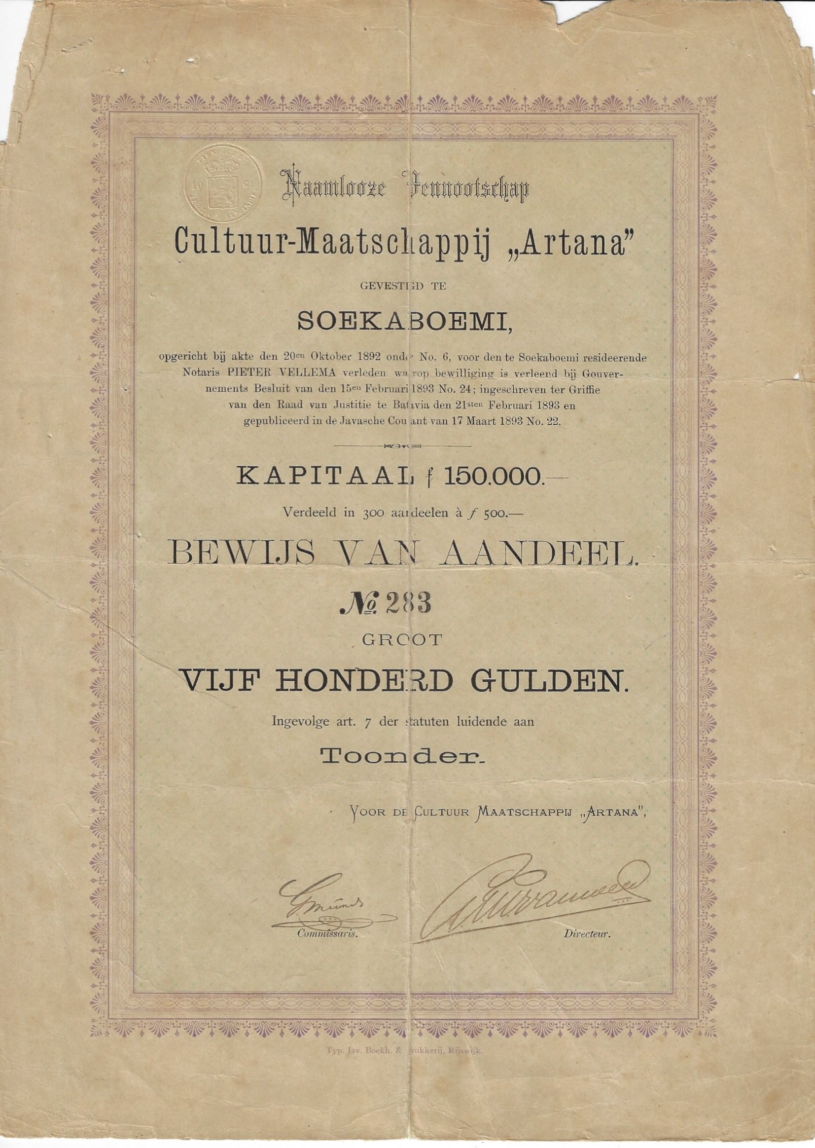 Niederländischer Anteilsschein aus der Kolonialzeit