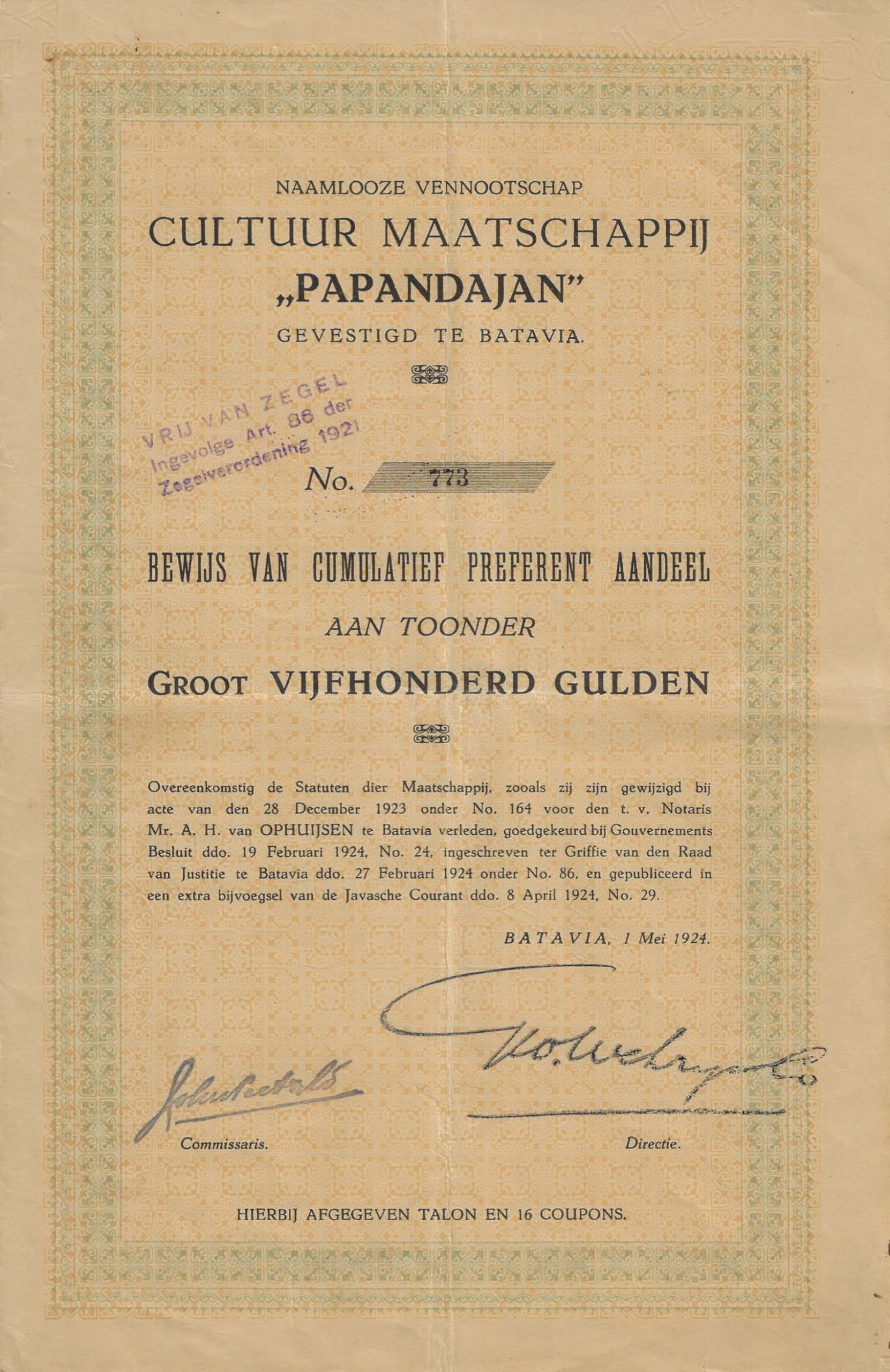 Niederländischer Anteilsschein aus der Kolonialzeit
