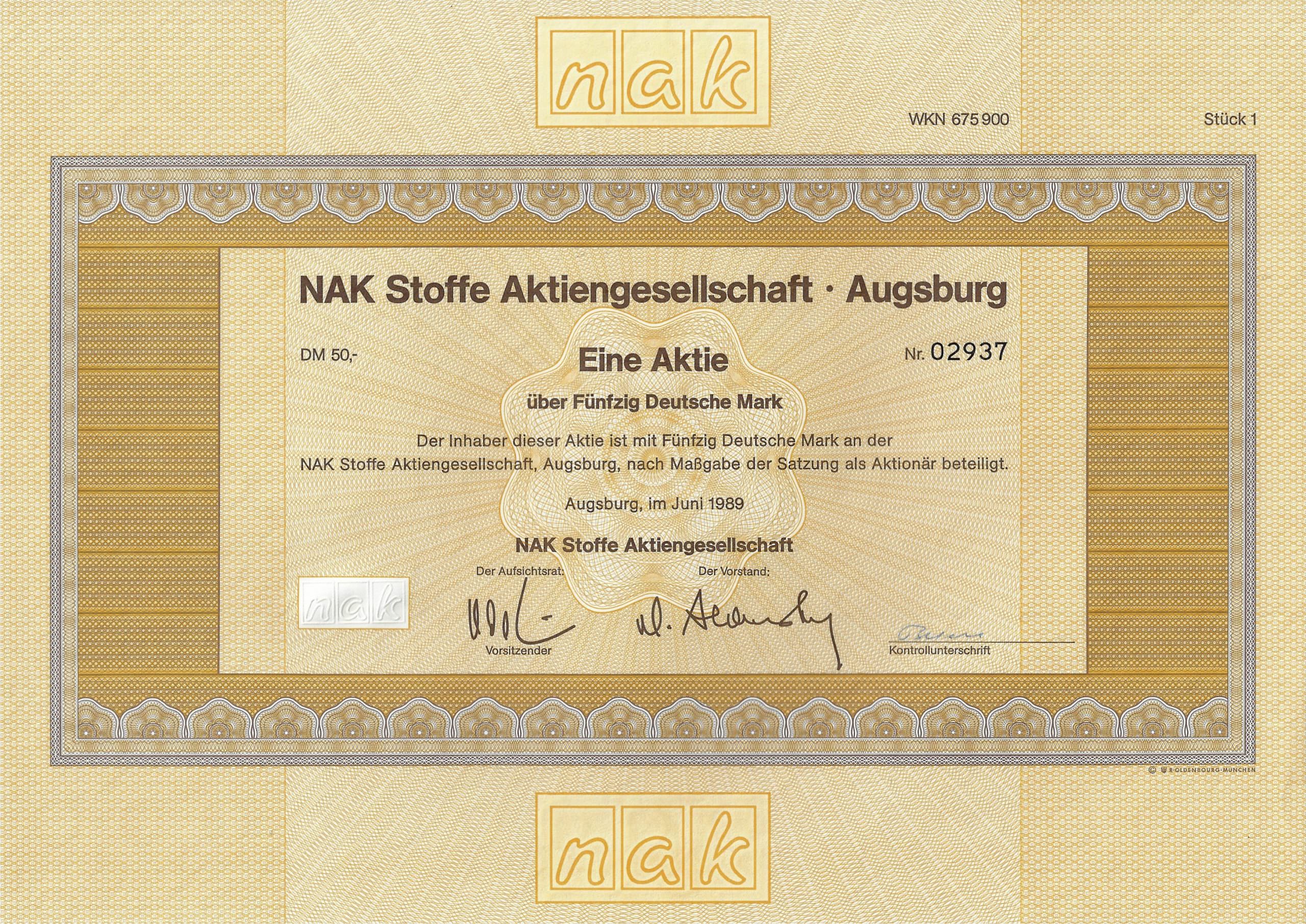 NAK Stoffe Aktiengesellschaft Augsburg, 1989