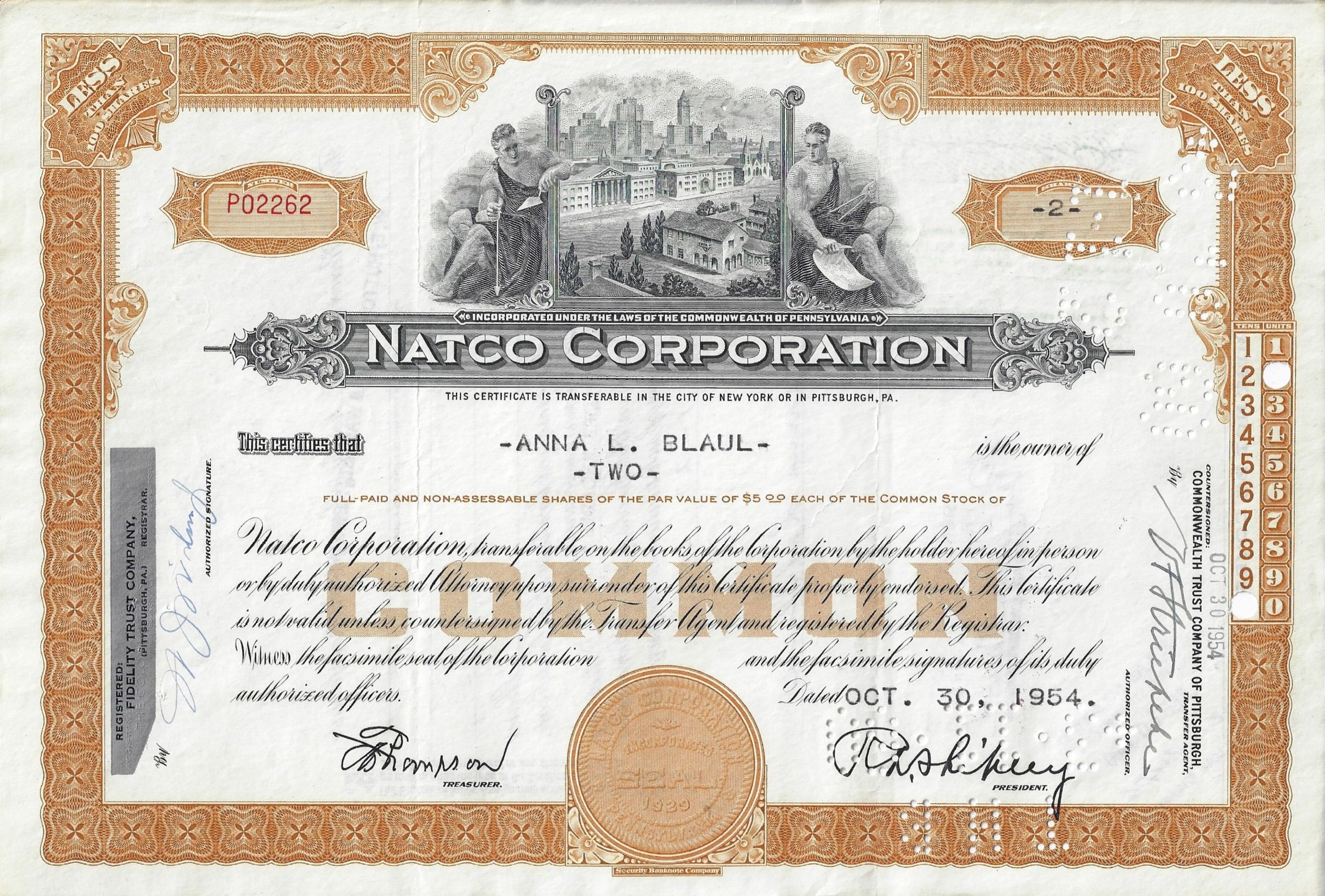 1933 änderte NATCO seinen offiziellen Firmennamen von The National Fireproofing Corporation in The NATCO Corporation. Obwohl NATCO die gleichen Produkte wie The National Fireproofing Corporation herstellte, gab es bei der Umstellung des Unternehmens subtile Änderungen. Die Leitungen wurden immer NATCO Conduits genannt, aber vor der Änderung hieß es „Hergestellt von The National Fireproofing Corporation“, nach der Änderung wurde es „Hergestellt von The NATCO Corporation“. Da diese Änderung im Jahr 1933 erfolgte, können diese Informationen zur groben Datierung der Produkte von NATCO verwendet werden.