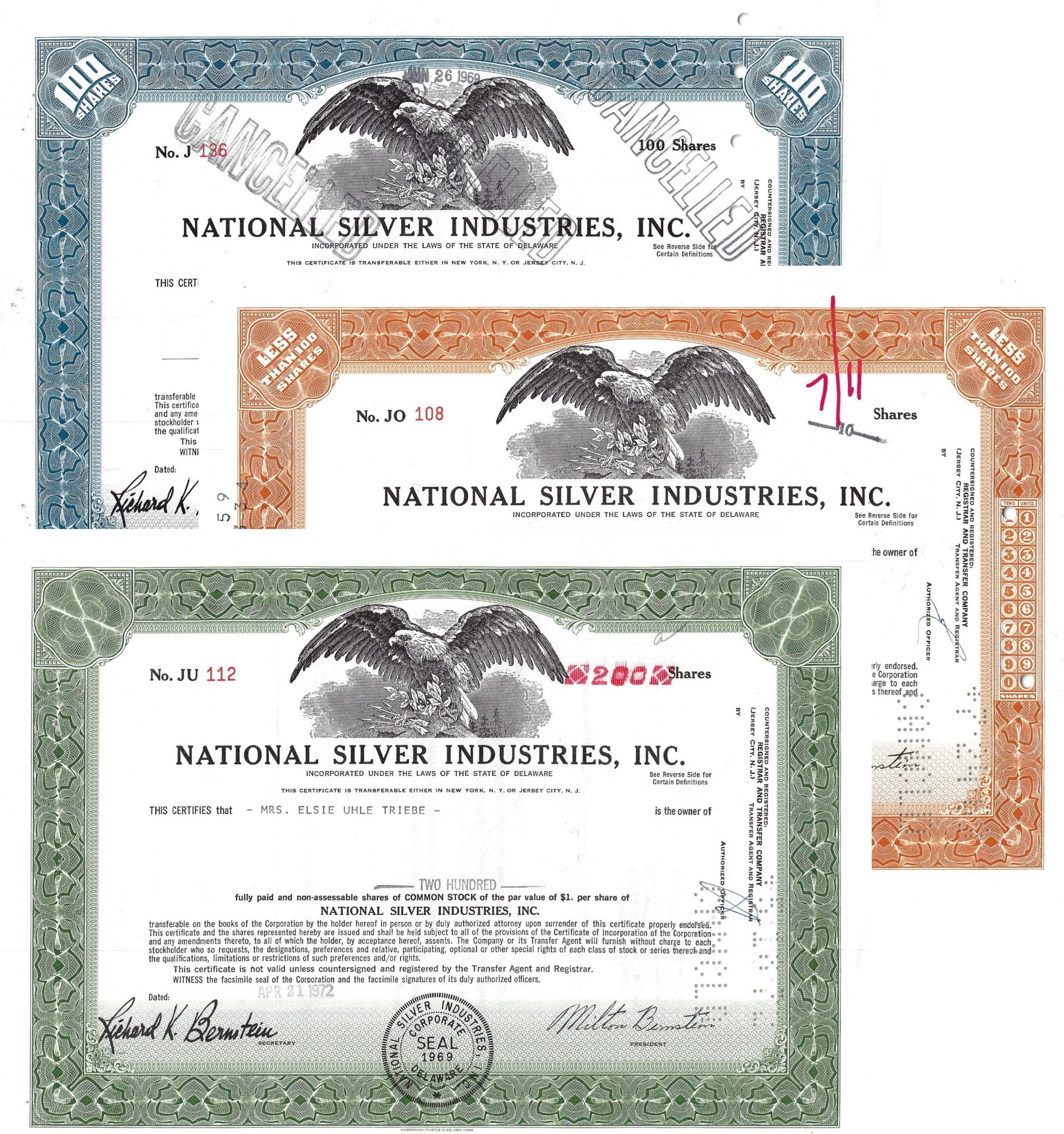 Die National Silver Industries Inc. wurde 1969 unter diesem Namen von den Gebrüdern Richard und Milton Bernstein gegründet.