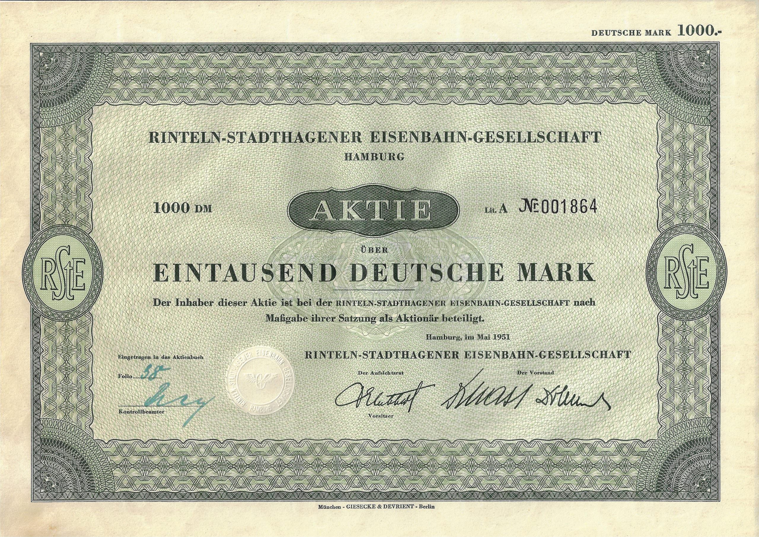 Unternehmenszweck: Bau und Betrieb einer Nebeneisenbahn von Rinteln über Steinbergen, Eilsen, Obernkirchen nach Stadthagen.