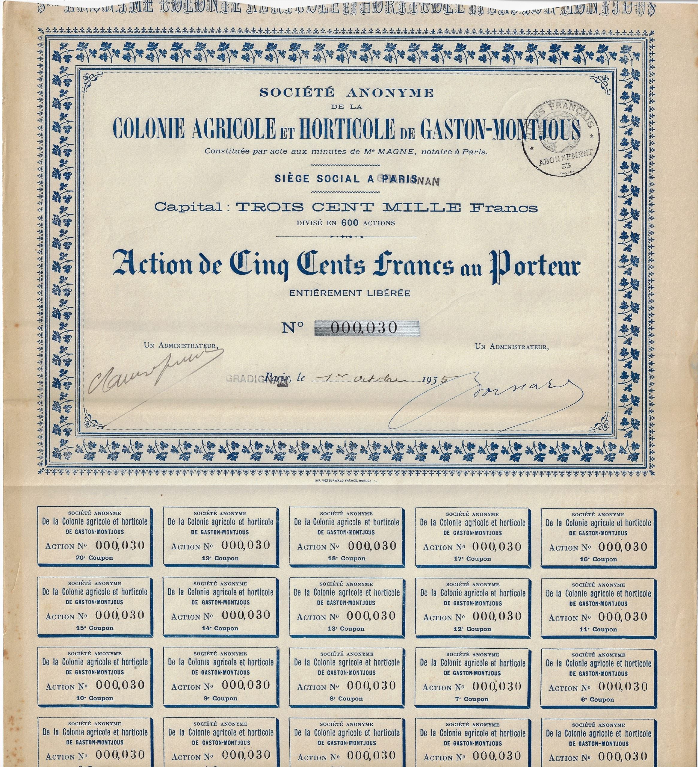 Societe Anonyme de la Colonie Agricole et Horticole de Gaston-Montjous, 1935