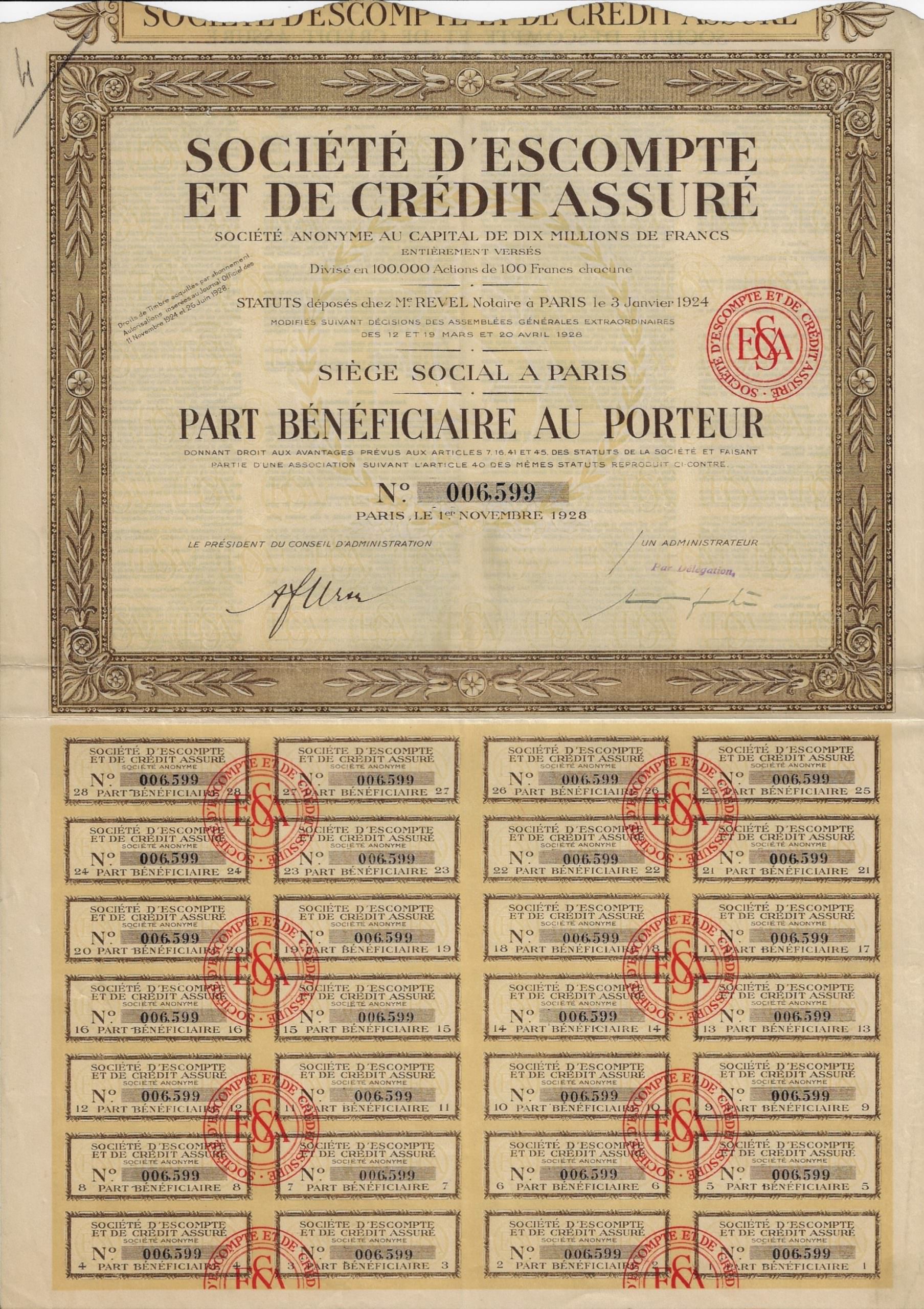 Societe dÈscompte et de Credit Assure S.A., 1926