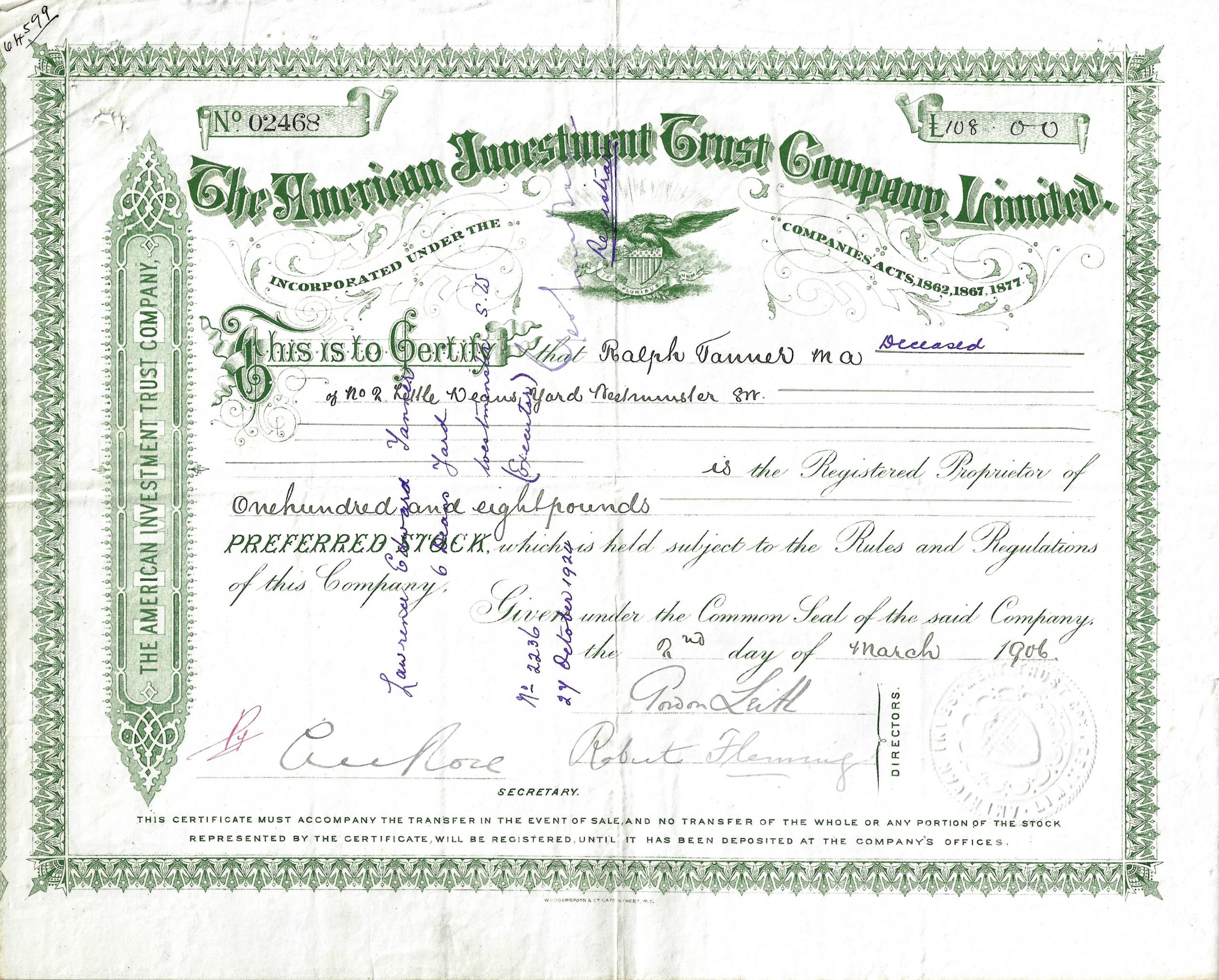 US-Investmentfirma, ausgestellt auf Ralph Tanner