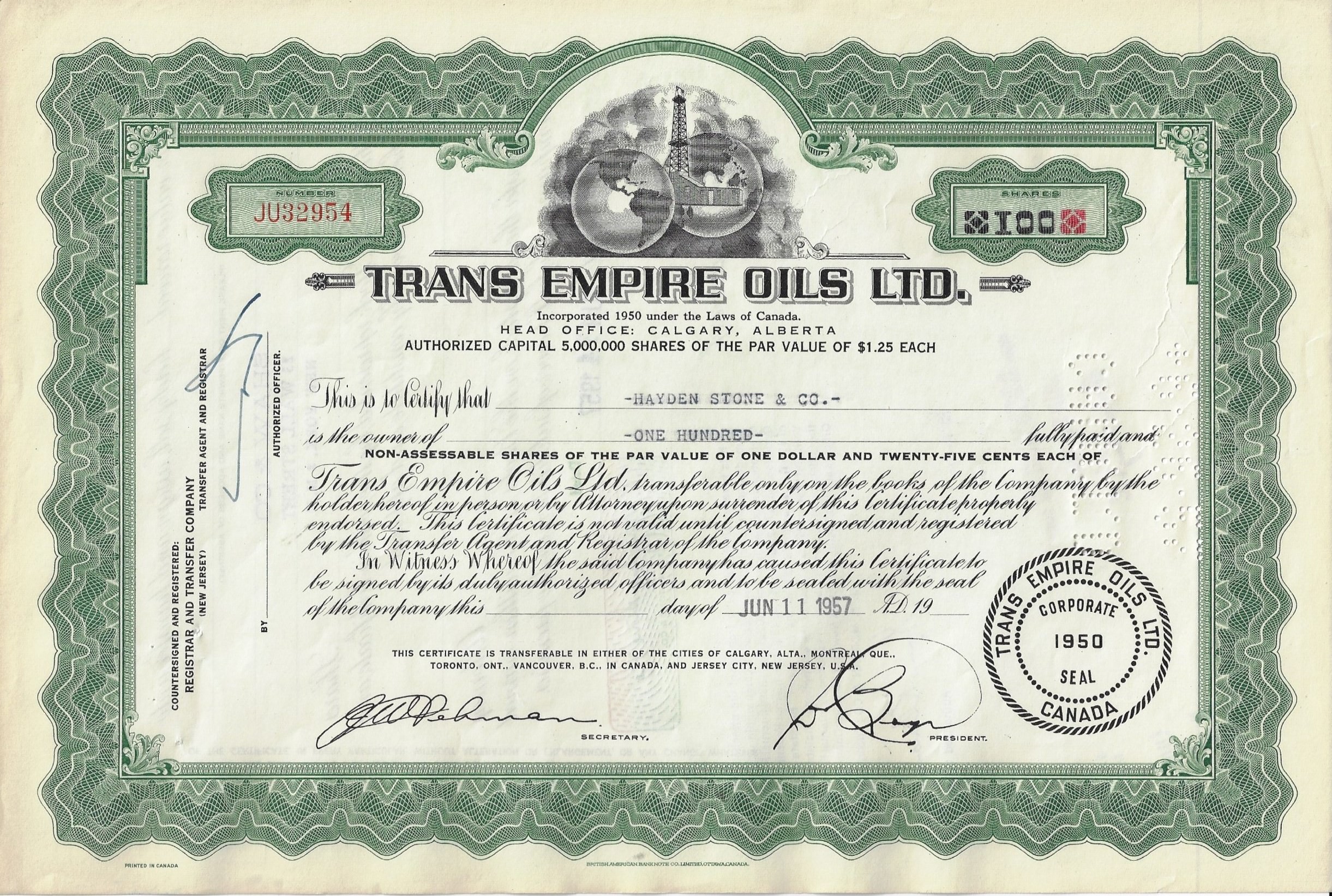 Trans Empire Oils Ltd. wurde am 30. Oktober 1950 in Kanada als Zusammenschluss der Vermögenswerte und Verbindlichkeiten der Globe Oil Company Ltd., British Empire Oil Developments Ltd., East-Leduc Oil Company Ltd. und Leduc-West Oil gegründet Company Ltd.