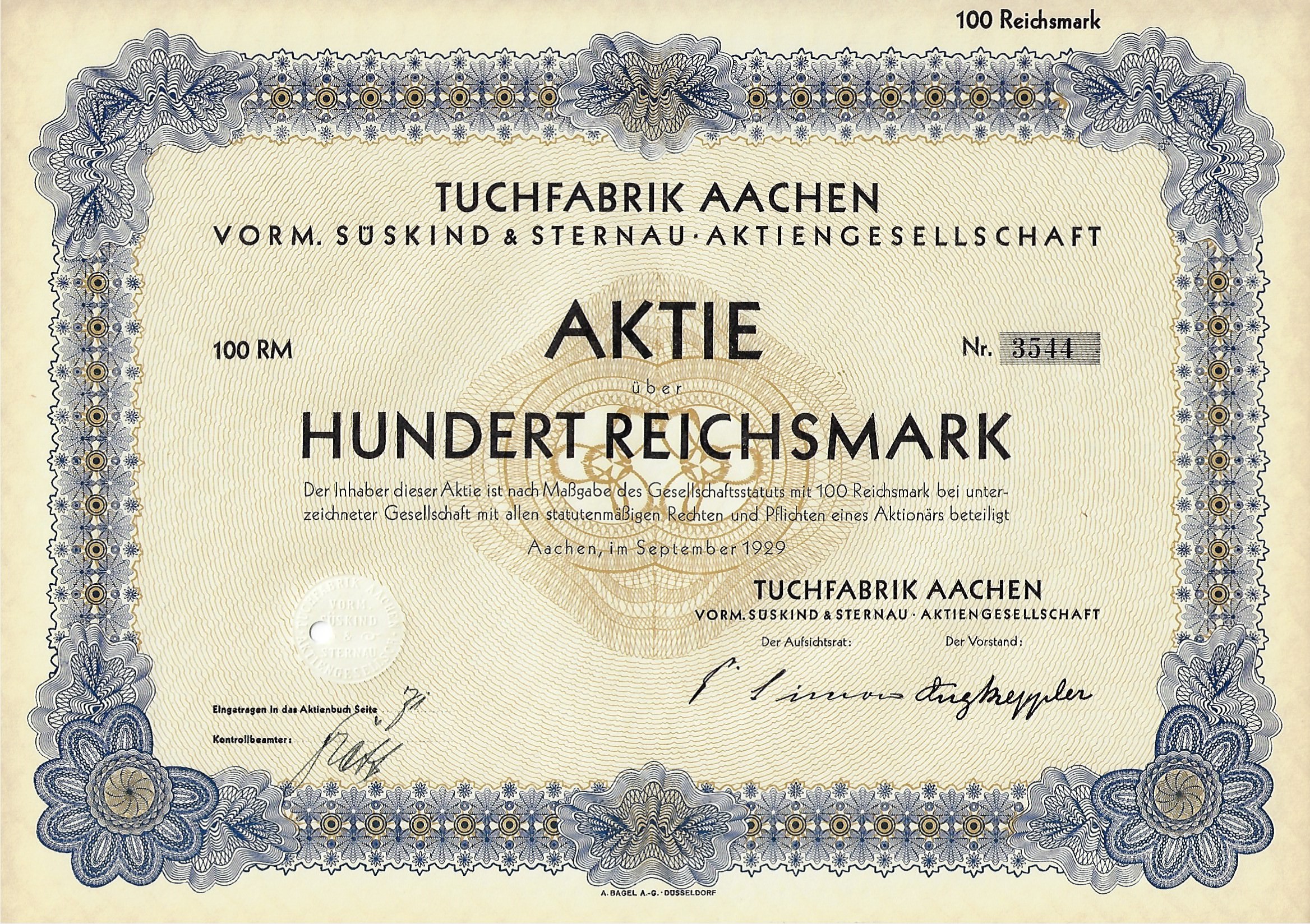Im Jahr 1887 wurde der Komplex von den Fabrikanten Siegmund Sternau und Albert Süskind übernommen, die ihre in den 1870er-Jahren gegründete Tuchfabrik „Süskind & Sternau“ mit einbrachten und das neue Gesamtunternehmen 1897 in „Tuchfabrik Aachen AG“ umwandelten.