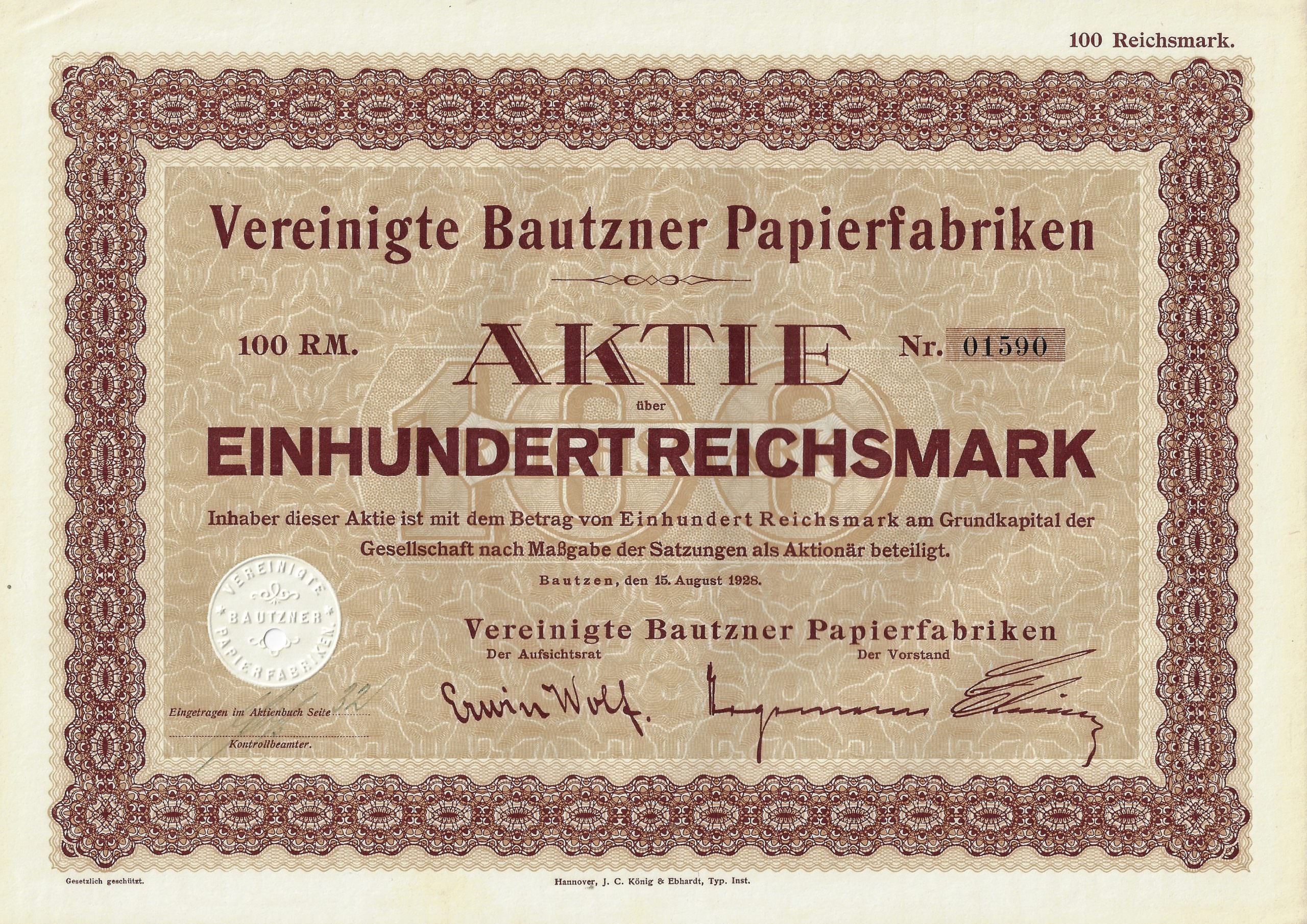 Unternehmenszweck: Herstellung von Papieren aller Art, sowie Holz- und Zellstoff