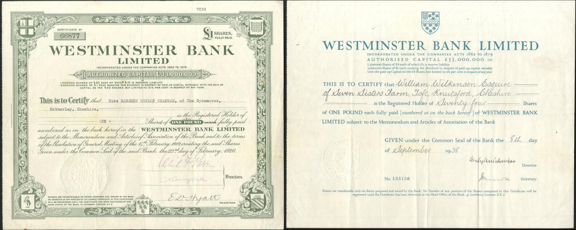 Die Westminster Bank war eine britische Privatkundenbank, die von 1834 bis zu ihrer Fusion mit der National Westminster Bank im Jahr 1970 in England und Wales tätig war