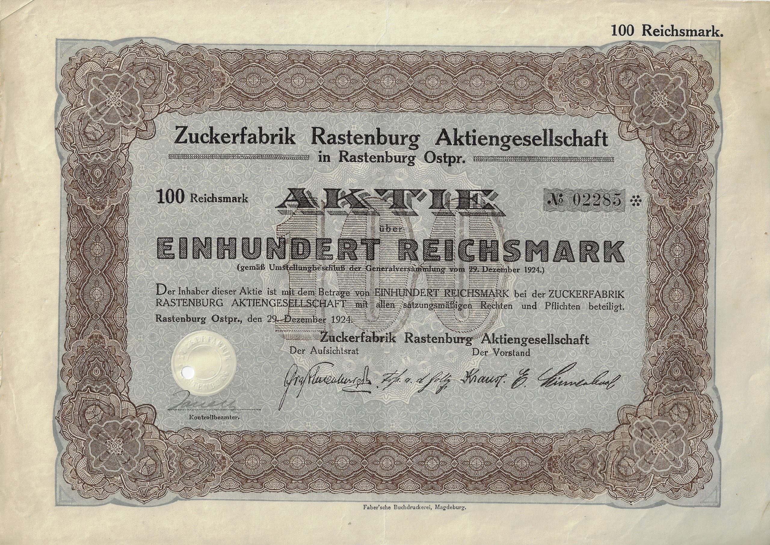 1881 von A. Wernicke und F. Schichau im ostpreußischen Rastenburg (heute Kętrzyn) errichtete Rohzuckerfabrik.